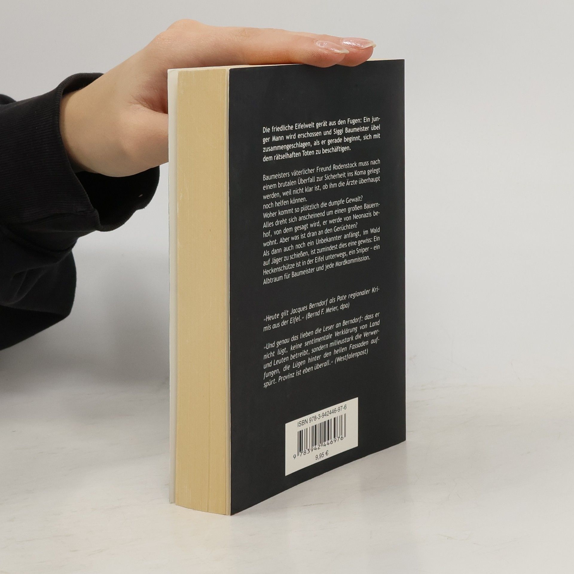In der Eifel herrscht Krieg, und niemand weiß, wo die Fronten verlaufen.Die friedliche Eifelwelt gerät völlig aus den Fugen: Siggi Baumeister wird schwer verletzt, noch ehe er sich mit den Untersuchungen um einen rätselhaften Toten beschäftigen kann. Sein väterlicher Freund Rodenstock muss nach einem brutalen Überfall sicherheitshalber ins Koma gelegt werden, weil nicht klar ist, ob ihm die Ärzte überhaupt noch helfen können.Alles dreht sich anscheinend um einen großen Bauernhof, von dem jedermann behauptet, er werde von Neonazis bewohnt. Aber was ist beweisbar? Ein junger Mann wird erschossen, eine Sechzehnjährige schlägt brutal mit einem Axtstiel zu, und ein Unbekannter schießt auf Jäger im Wald.Mit Sicherheit weiß man: Ein Heckenschütze ist in der Eifel unterwegs, ein Sniper - ein Alptraum für jede Mordkommission. Die Stimmung ist so aufgeheizt, dass junge Mütter ihren Kindern verbieten, draußen zu spielen.