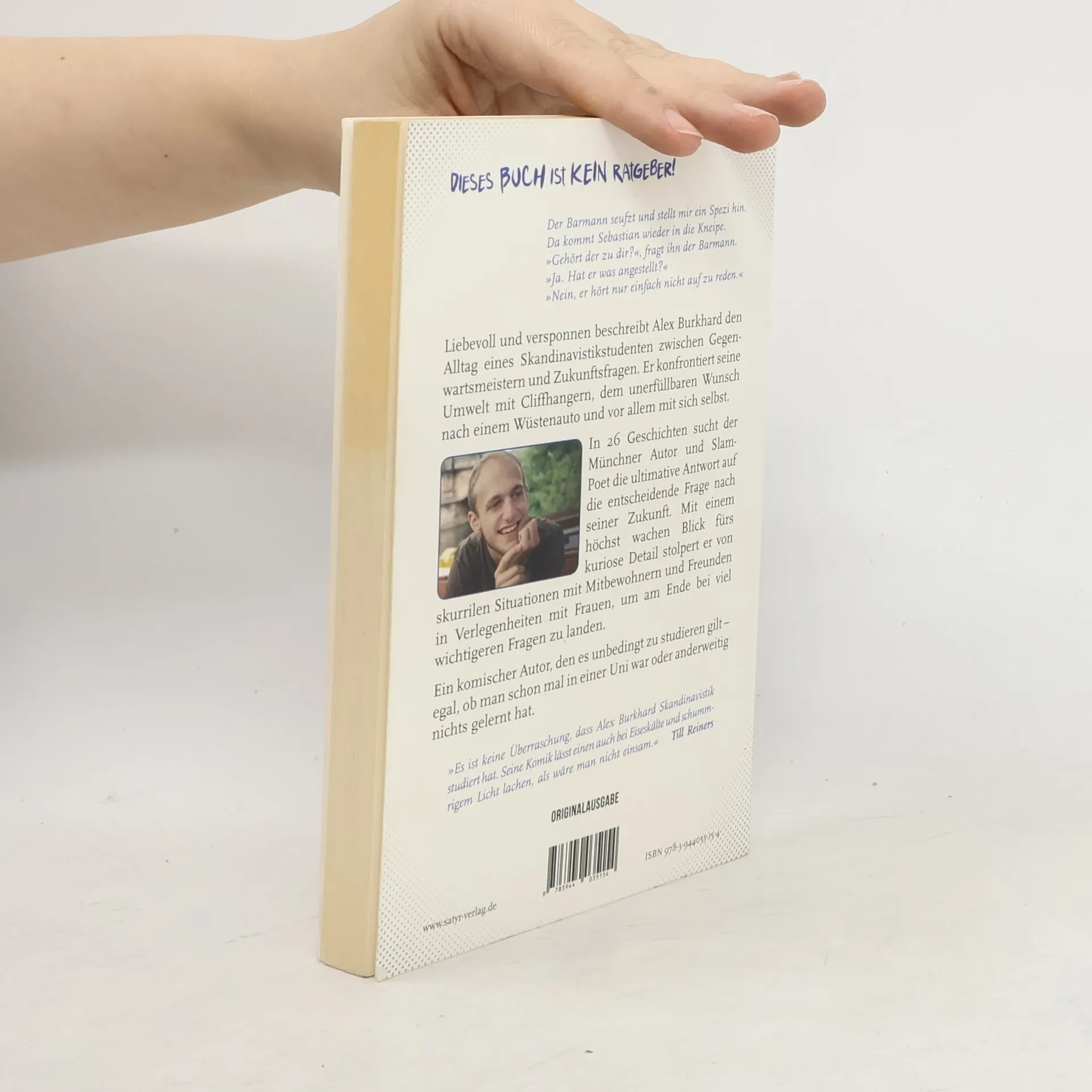 Pflichtlektüre! Die Frage kennt wohl jeder, der mal mit Geisteswissenschaften Kontakt hatte: '. und was kann man damit später mal machen?' Alex Burkhards Geschichten geben darauf keine endgültigen Antworten, doch geben sie die Frage auf höchst originelle Weise weiter. Und das ist ja auch eine Erkenntnis. Wenn man eine Geisteswissenschaft studiert, werden einem die wirklich elementaren Fragen nicht von den Dozenten, sondern von den Mitmenschen gestellt. . und was kann man damit später mal machen? gewährt einen sehr humorvollen, manchmal auch poetischen und nachdenklichen Einblick in die Gedanken- und Alltagswelt eines Geisteswissenschaftlers. Eine Welt, die sich am Ende gar nicht so sehr von der anderer Menschen unterscheidet, denn Alex Burkhard betrachtet das Leben stets mit einem höchst wachen Blick fürs kuriose Detail. Ein komischer Autor, den man unbedingt entdecken sollte! 26 pointierte Geschichten, die sich zusammenfügen zu einem chaotisch-liebevollen Gesamtbild eines Studenten zwischen Gegenwartsmeistern und Zukunftsfragen. Oder anders gesagt: Ob es sich lohnt, Geisteswissenschaften zu studieren, wissen wir nicht. Aber es lohnt sich auf jeden Fall, Alex Burkhard zu studieren.