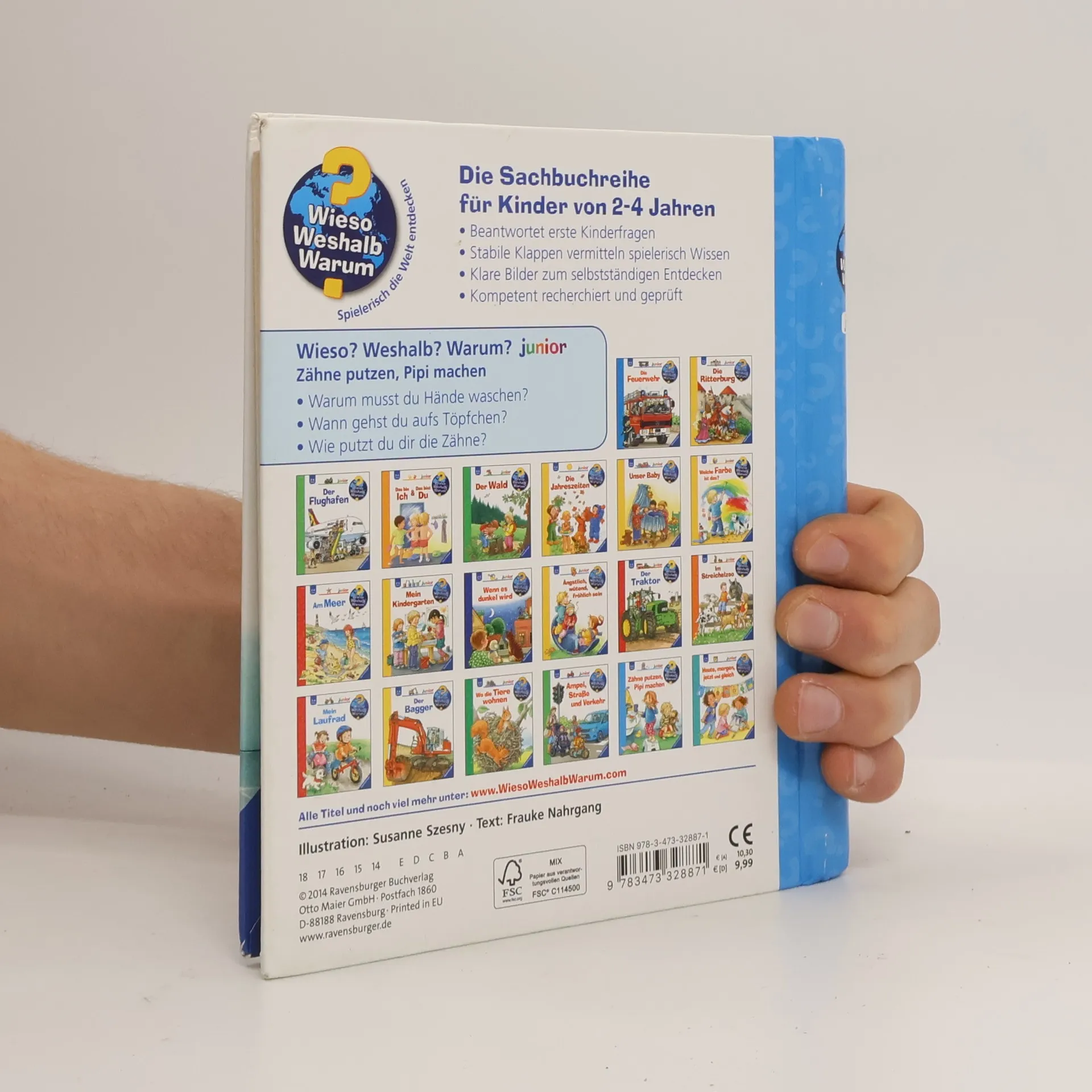 Das Abenteuer Badezimmer kann beginnen: Warum musst du Hände waschen? Wie putzt du dir die Zähne? Wann gehst du aufs Töpfchen? Hier lernen Kinder die tägliche Routine im Badezimmer spielerisch kennen. Gleichzeitig gibt das Buch klare und verständliche Antworten darauf, warum Körperpflege so wichtig ist. So verlieren Kinder die Scheu vor Seife und Schaum und aus Badetagen werden Lieblingstage! Wieso? Weshalb? Warum? junior Die Sachbuchreihe für Kinder von 2-4 Jahren Jeden Tag entdecken Kinder etwas Neues – und haben viele Fragen. Wann kommt die Feuerwehr? Was machen die Tiere im Winter? Warum muss ich Zähne putzen? Die beliebte Sachbuchreihe Wieso? Weshalb? Warum? junior beantwortet die Fragen der Kinder auf Augenhöhe. Sie beleuchtet unterschiedlichste Themen aus ihrer Alltags- und Interessenswelt altersgerecht und mit viel Liebe zum Detail. Die Reihe ist speziell auf kleine Hände und die Bedürfnisse der Kleinsten angepasst. Klare und liebevolle Bilder, kurze Sachtexte sowie handliche Klappen, die Bewegungen veranschaulichen und überraschende und lustige Einblicke gewähren, ermöglichen Kindern, sich ihre Themen selbst zu erschließen. Der Spaß am eigenhändigen Entdecken, die liebevolle Umsetzung und die hochwertige Ausstattung garantieren langanhaltende Freude an jedem Buch.
