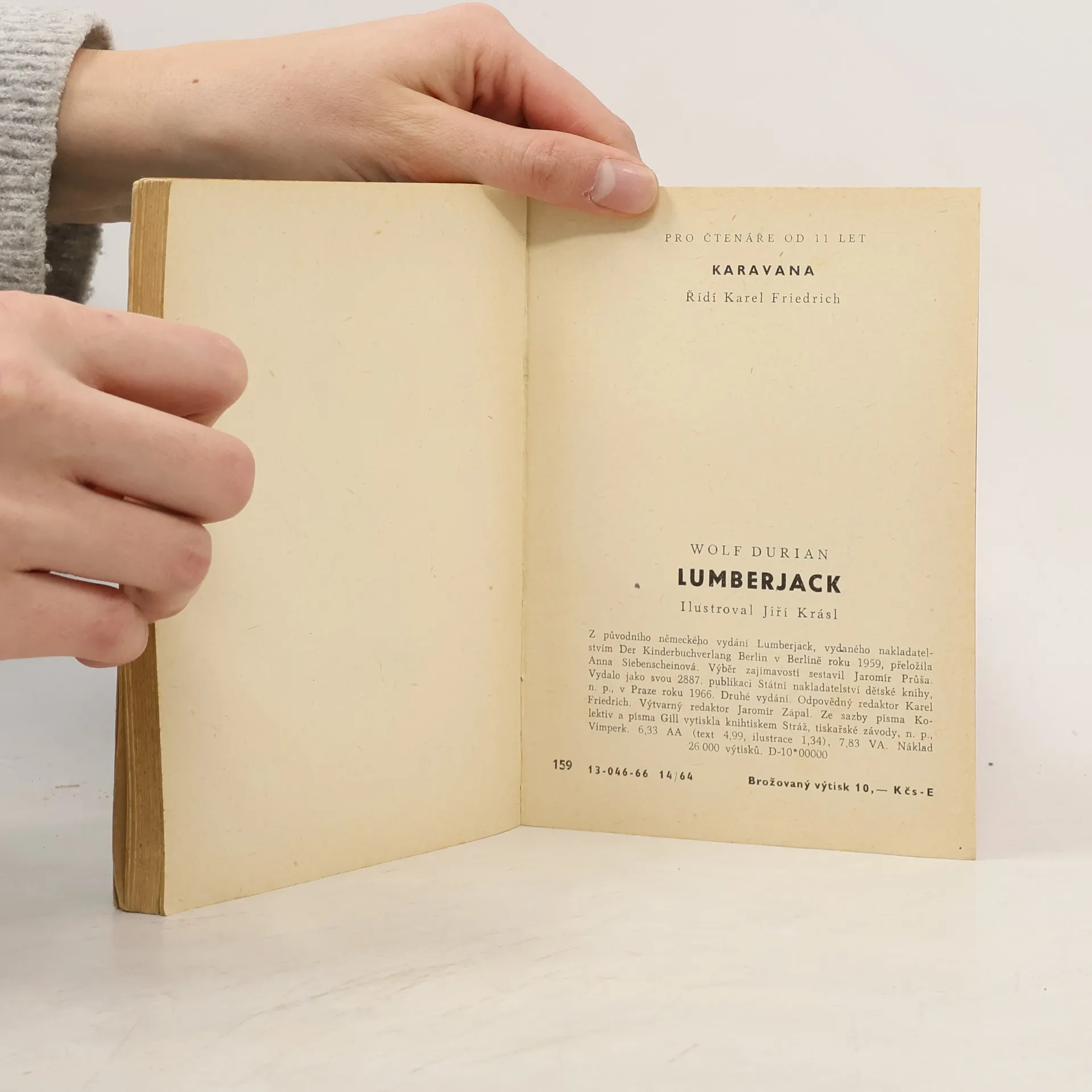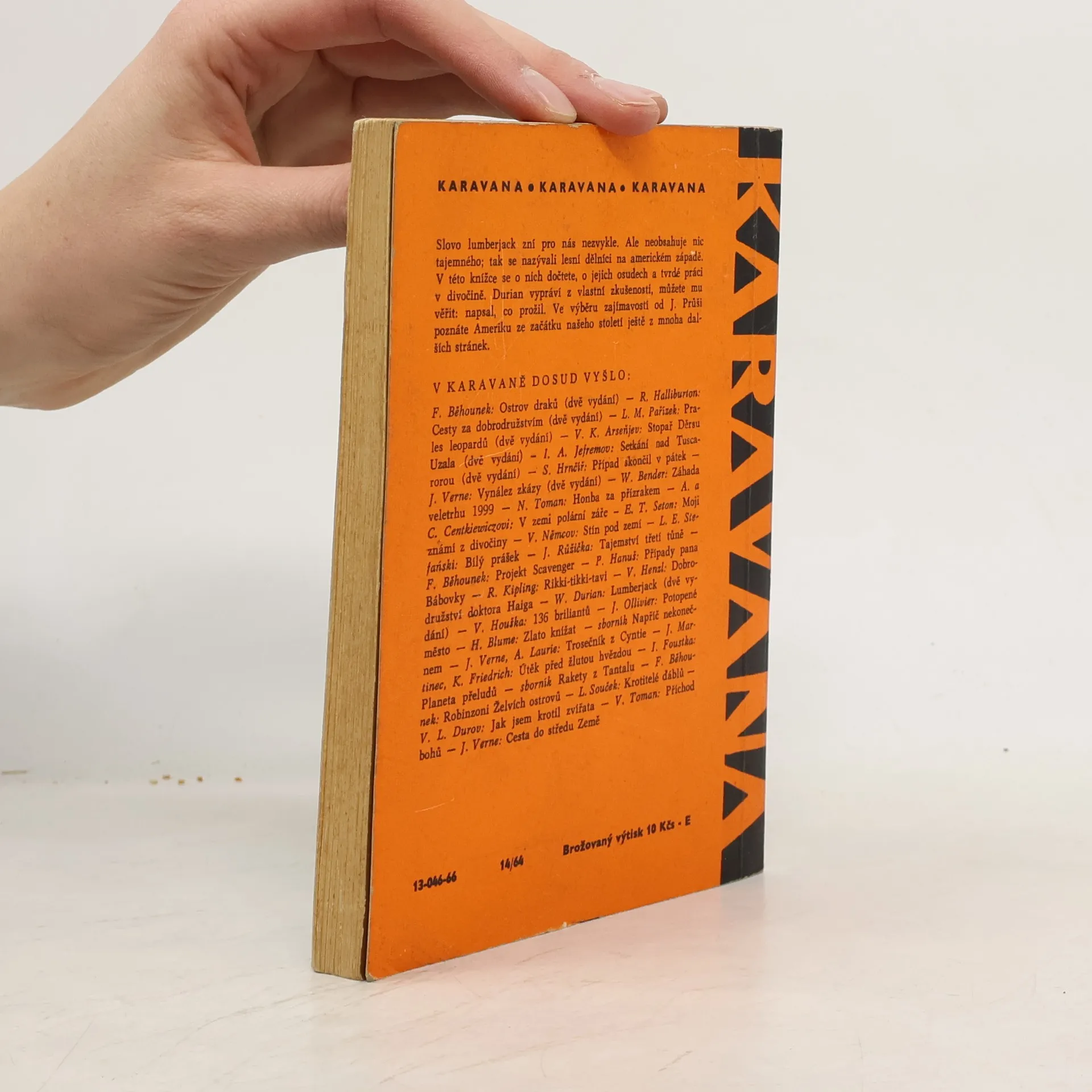 Wolf Durian: Lumberjack. Dobrodružství v severoamerických lesích. Edice: Karavana knihy (1958-1968), strana 7 - 120. Jaromír Průša: Výběr zajímavostí. Například kapitoly: První Čech v Americe, Kde se vzali v Americe černoši, Zkáza Titaniku, Zlatá horečka, Edisonův kinetoskop, Král prérie,Rezervace, Socha Svobody, aj. Strana 121 - 158. "Byl jsem lumberjackem. Swamper August a lovec Čarli, sawyer Otto a doktor byli při tom a mohli by to dosvědčit. Víte, kdo je to lumberjack? Už jste někdy slyšeli o swamperech, sawyerech, kenthuckmenech, lesních dělnících, na Divokém západě? Povím vám, jak to bylo. Nic jsem si nevymyslel, všechno je čirá pravda, jak jsem to sám zažil. Co vám vypravuji, odehrálo se v letech 1911 a 1912. Od té doby uplynul celý lidský věk a mnohé se změnilo. Budu vám vypravovat, jak to bylo tenkrát, v době mého mládí. W. D. (Wolf Durian)" ... (strana 5, anotace - předmluva autora, 2. vydání, rok 1966)