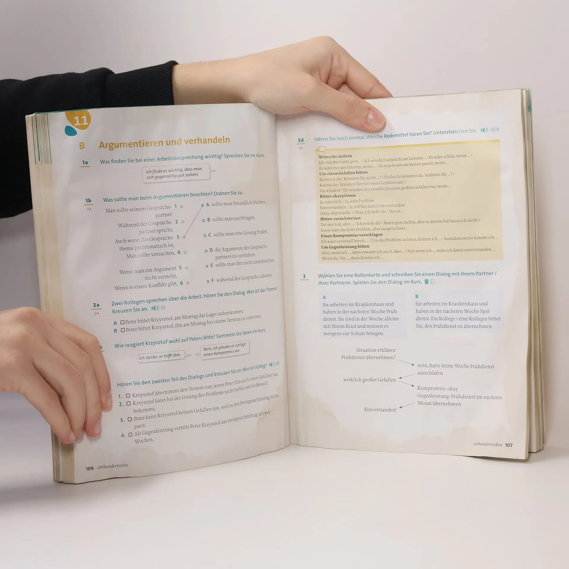 Deutsch am Arbeitsplatz bereitet in kurzen Szenarien sprachlich auf den Arbeitsalltag in Deutschland vor und fördert die berufliche Handlungsfähigkeit. Das kommunikativ angelegte und modular aufgebaute Material lässt sich in 120 bis 150 Unterrichtsstunden bearbeiten.Routinegespräche mit Kollegen, Vorgesetzten und Kunden führenSchriftliche Mitteilungen verfassenLesekompetenz steigernGrammatikkenntnisse auf der Stufe B1+ festigenDen berufsbezogenen Wortschatz erweitern