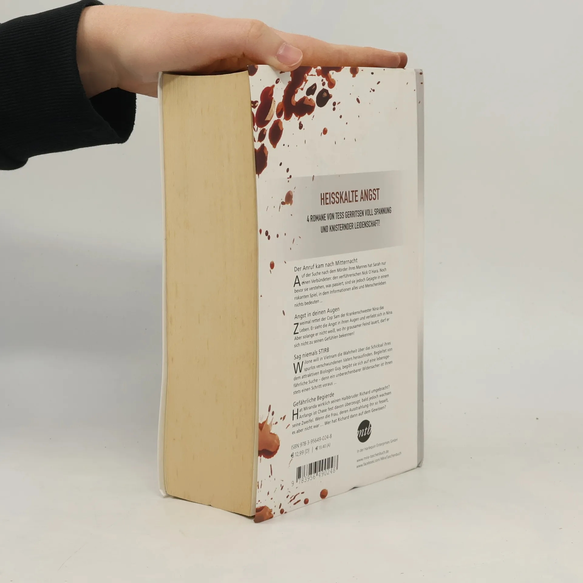 Vier spannende Thriller der internationalen Bestsellerautorin Tess Gerritsen! 1) Der Anruf kam nach Mitternacht: Auf der Suche nach dem Mörder ihres Mannes hat Sarah nur einen Verbündeten: den verführerischen Nick O`Hara. Noch bevor sie verstehen, was passiert, sind sie jedoch Gejagte in einem riskanten Spiel, in dem Informationen alles und Menschenleben nichts bedeuten. 2) Angst in deinen Augen: Zweimal rettet der Cop Sam der Krankenschwester Nina das Leben. Er sieht die Angst in ihren Augen und verliebt sich in Nina. Aber solange er nicht weiß, wo ihr grausamer Feind lauert, darf er sich nicht zu seinen Gefühlen bekennen! 3) Sag niemals stirb: Wilone will in Vietnam die Wahrheit über das Schicksal ihres spurlos verschwundenen Vaters herausfinden. Begleitet von dem attraktiven Biologen Guy, begibt sie sich auf eine lebensgefährliche Suche – denn ein unberechenbarer Widersacher ist ihnen stets einen Schritt voraus. 4) Gefährliche Begierde: Hat Miranda wirklich seinen Halbbruder Richard umgebracht? Anfangs ist Chase fest davon überzeugt, bald wachsen seine Zweifel. Wenn die Frau, deren Ausstrahlung ihn so fesselt, es aber nicht war … Wer hat Richard dann auf dem Gewissen?