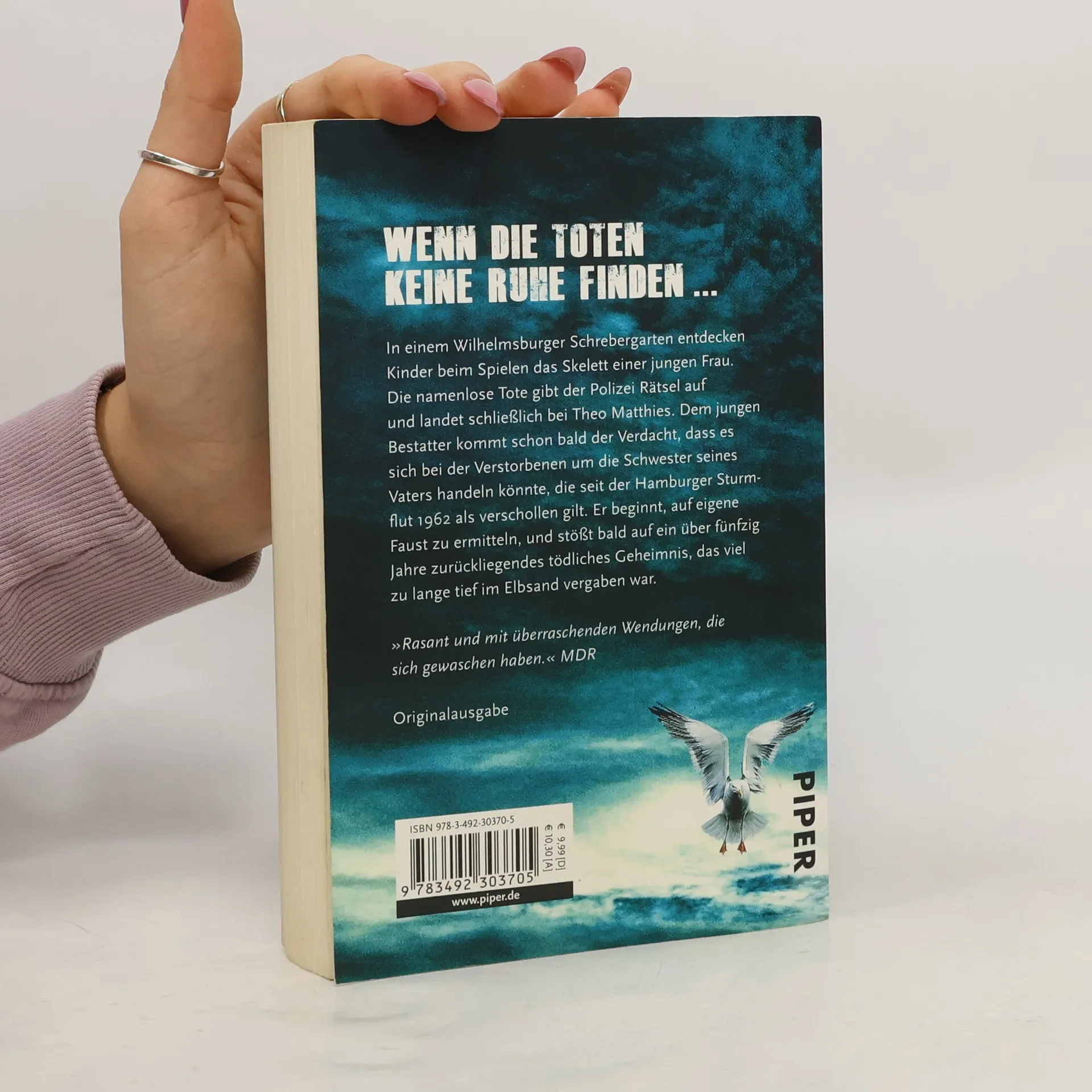 In einem Wilhelmsburger Schrebergarten finden Kinder beim Spielen das Skelett einer jungen Frau. Die namenlose Tote gibt der Polizei Rätsel auf und landet schließlich bei Theo Matthies. Dem Bestatter kommt schon bald der Verdacht, dass es sich bei der Verstorbenen um die Schwester seines Vaters handeln könnte, die seit der Hamburger Sturmflut 1962 als verschollen gilt. Er beginnt, auf eigene Faust zu ermitteln, und stößt auf ein über fünfzig Jahre zurückliegendes tödliches Geheimnis, das tief im Elbsand vergraben war.