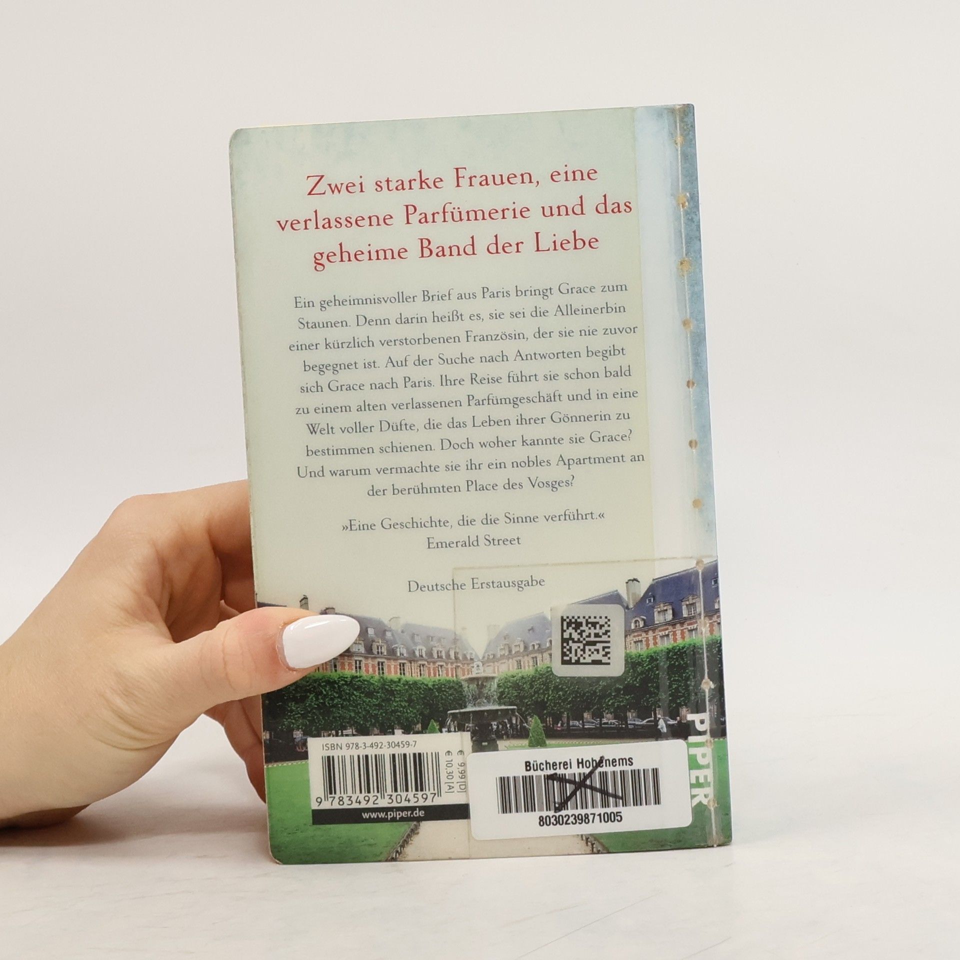 Ein geheimnisvoller Brief aus Paris bringt Grace zum Staunen. Denn darin heißt es, sie sei die Alleinerbin einer kürzlich verstorbenen Französin, der sie nie zuvor begegnet ist. Auf der Suche nach Antworten begibt sich Grace nach Paris. Ihre Reise führt sie schon bald zu einem alten verlassenen Parfümgeschäft und in eine Welt voller Düfte, die das Leben ihrer Gönnerin zu bestimmen schienen. Doch woher kannte sie Grace? Warum vermachte sie ihr ein nobles Apartment an der berühmten Place des Vosges?
