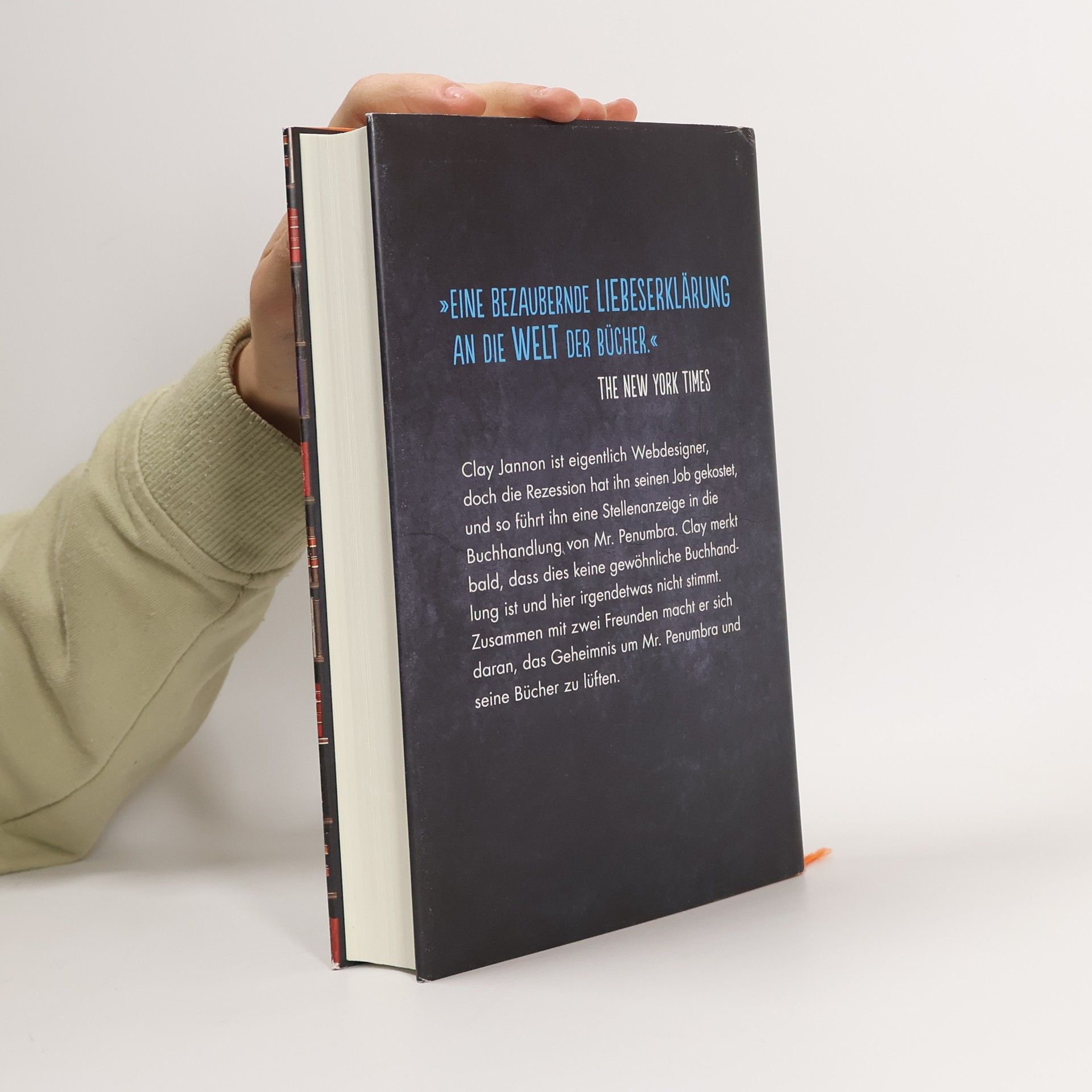 Als Clay Jannon seinen Job als Webdesigner verliert, meldet er sich auf eine Stellenanzeige hin bei Mr. Penumbra, der in San Francisco eine alte, verstaubte Buchhandlung betreibt, die rund um die Uhr geöffnet ist. Clay übernimmt die Nachtschicht, und bald ist ihm klar, dass hier irgendetwas nicht stimmt: Die Kunden kaufen nichts, sondern leihen die Bücher nur aus, drei Stockwerke hohe Regale beherbergen riesige Folianten, die keine Texte beinhalten, sondern nur ellenlange Reihen aus Buchstaben. Nach und nach findet Clay heraus, dass Mr. Penumbra und seine Kunden einem uralten Geheimnis auf der Spur sind. Mit der Unterstützung seiner Freundin Kat und seines ältesten Kumpels Neel, sowie der Weisheit von Mr. Penumbra, macht sich Clay daran, dieses Geheimnis zu lüften. Ein Geheimnis, das bis in die Anfangszeiten des Buchdrucks zurückreicht. Die sonderbare Buchhandlung des Mr. Penumbra ist ein spannendes literarisches Rätsel und ein inspirierendes und philosophisches Buch voller einzigartiger Charaktere und visionärer Ideen.