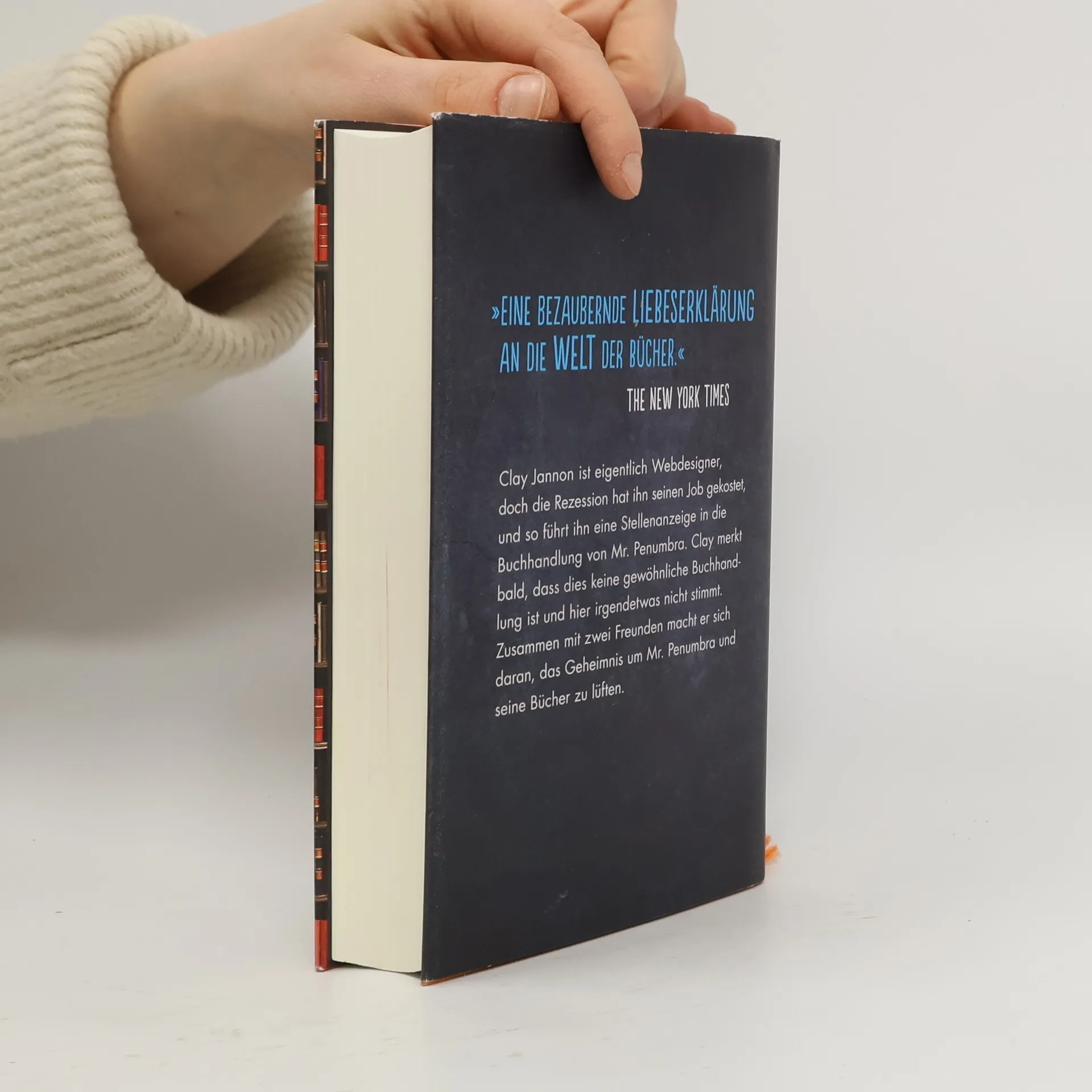 Als Clay Jannon seinen Job als Webdesigner verliert, meldet er sich auf eine Stellenanzeige hin bei Mr. Penumbra, der in San Francisco eine alte, verstaubte Buchhandlung betreibt, die rund um die Uhr geöffnet ist. Clay übernimmt die Nachtschicht, und bald ist ihm klar, dass hier irgendetwas nicht stimmt: Die Kunden kaufen nichts, sondern leihen die Bücher nur aus, drei Stockwerke hohe Regale beherbergen riesige Folianten, die keine Texte beinhalten, sondern nur ellenlange Reihen aus Buchstaben. Nach und nach findet Clay heraus, dass Mr. Penumbra und seine Kunden einem uralten Geheimnis auf der Spur sind. Mit der Unterstützung seiner Freundin Kat und seines ältesten Kumpels Neel, sowie der Weisheit von Mr. Penumbra, macht sich Clay daran, dieses Geheimnis zu lüften. Ein Geheimnis, das bis in die Anfangszeiten des Buchdrucks zurückreicht. Die sonderbare Buchhandlung des Mr. Penumbra ist ein spannendes literarisches Rätsel und ein inspirierendes und philosophisches Buch voller einzigartiger Charaktere und visionärer Ideen.