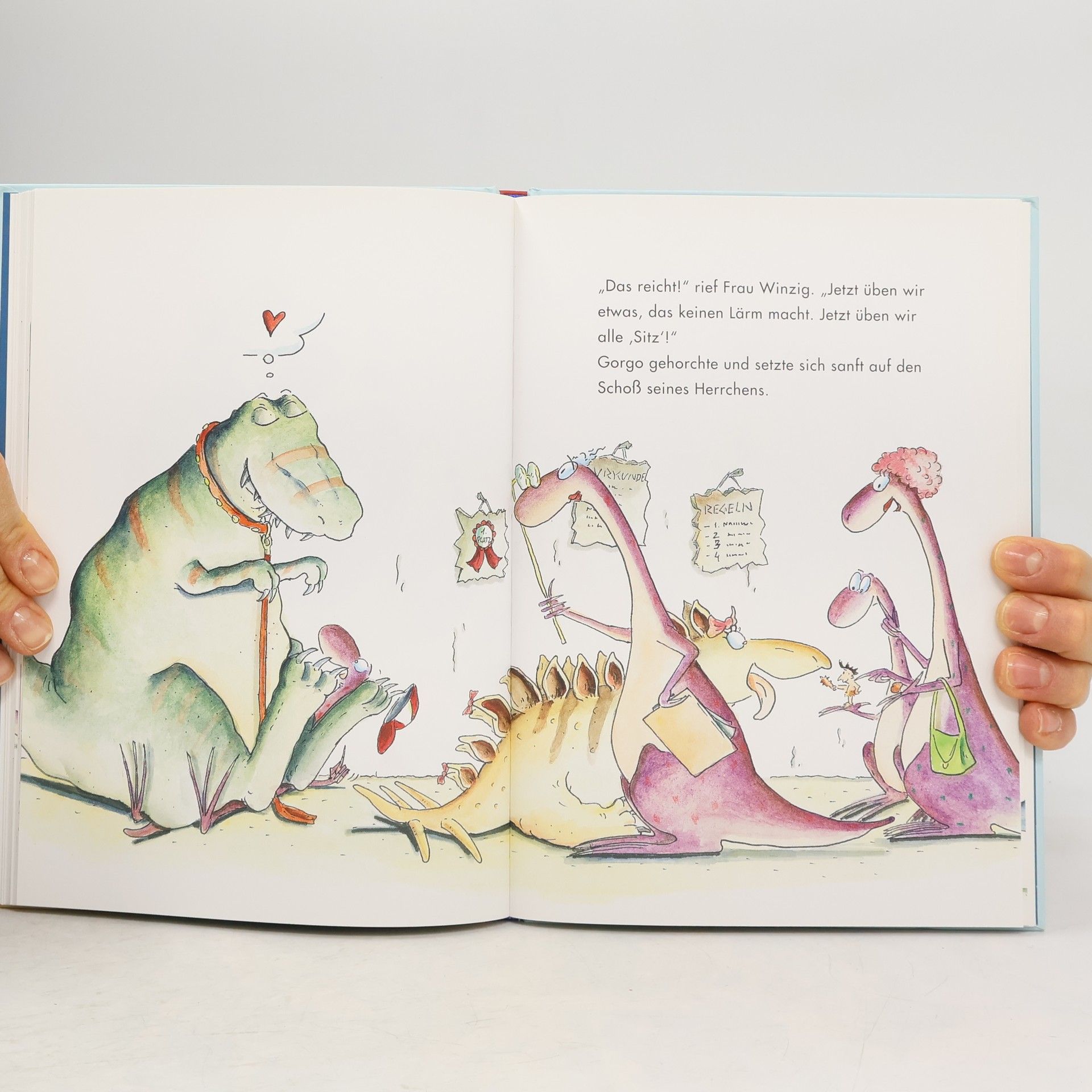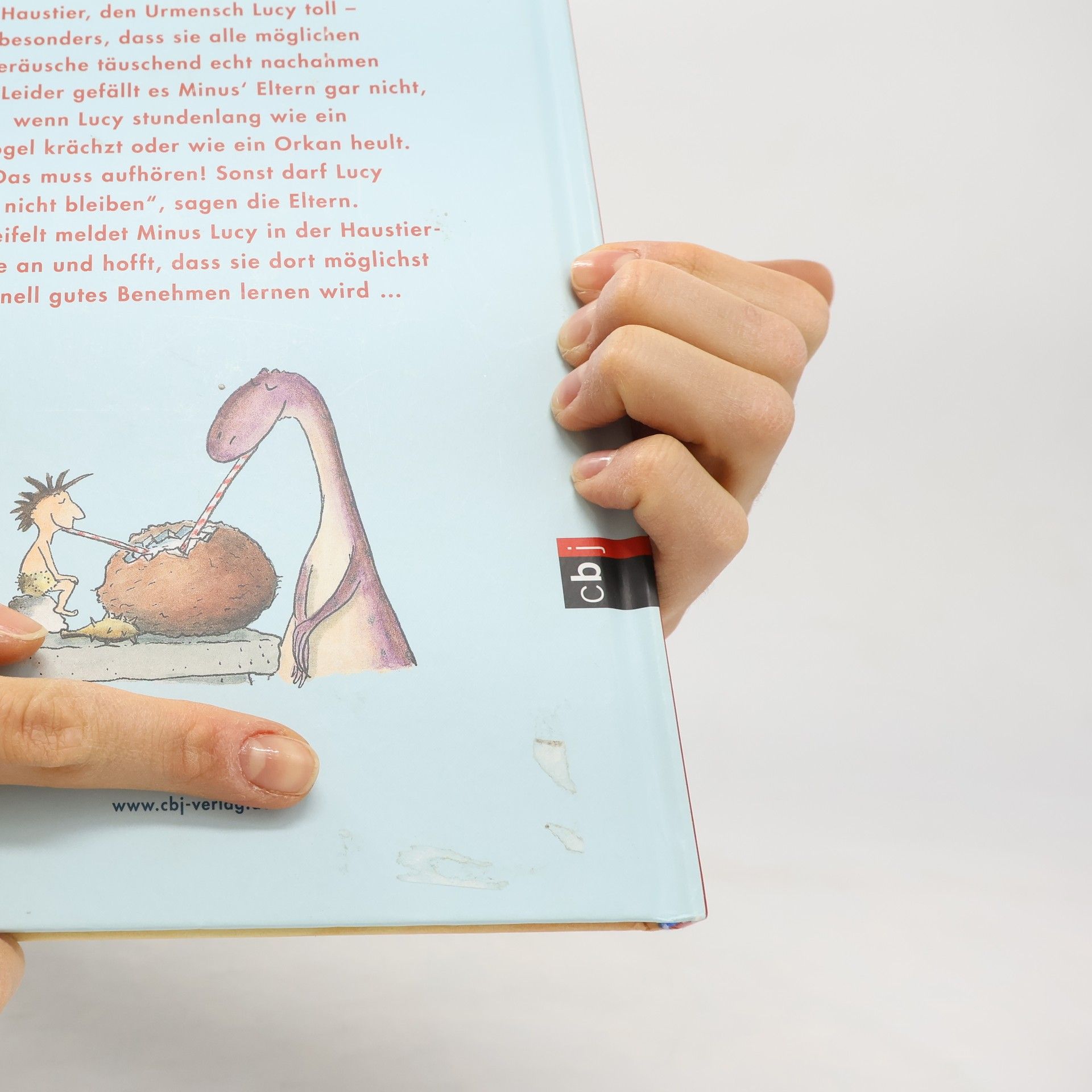 Dinosaurier Minus findet sein Haustier, den Urmensch Lucy, toll – besonders dass sie Geräusche so täuschend echt nachahmen kann. Leider gefällt es Minus‘ Eltern gar nicht, wenn Lucy stundenlang wie ein Urvogel krächzt oder wie ein Orkan heult. »Das muss aufhören! Sonst darf Lucy nicht bleiben!«, sagen die Eltern. Verzweifelt meldet Minus seine Lucy in der Haustier-Schule an. Dort lernt sie zwar »Sitz« und »Platz«, aber auch dabei macht sie immer einen Höllenlärm und treibt alle Kursteilnehmer in den Wahnsinn. Wird Minus seine Lucy behalten können? Ausstattung: Mit fbg. Illustrationen