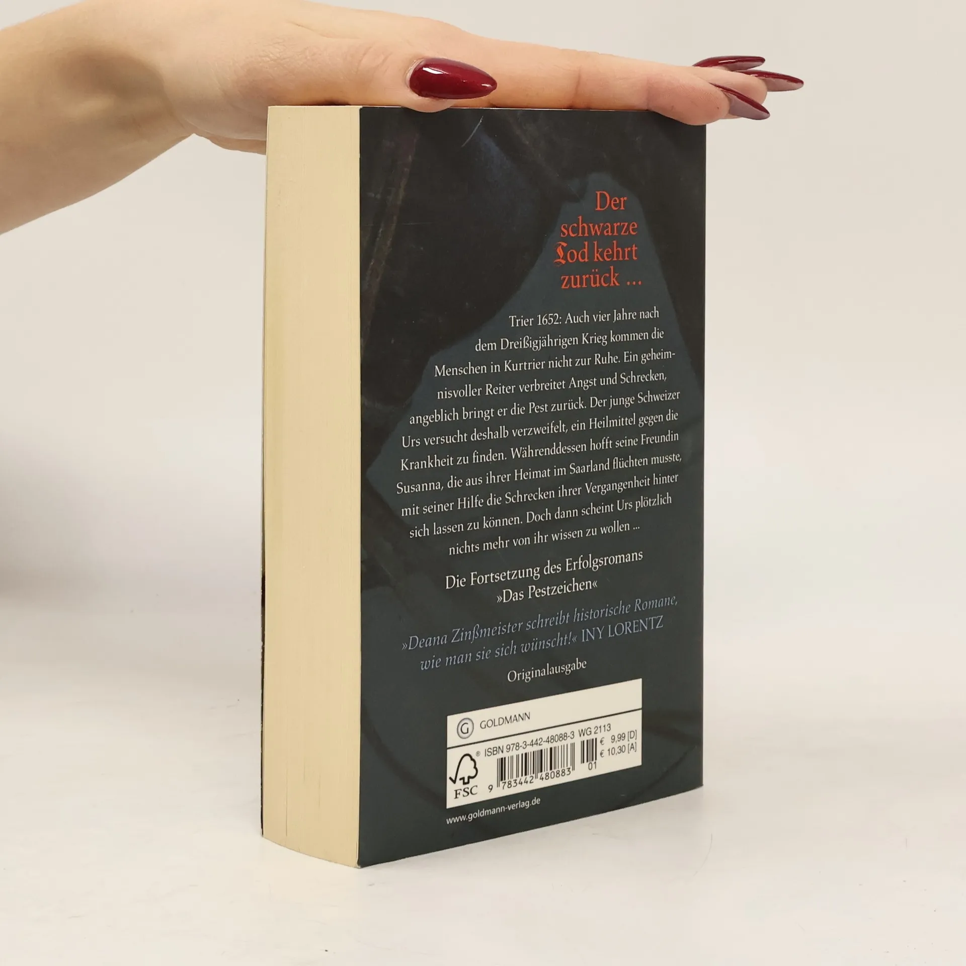 Der schwarze Tod kehrt zurück … Trier 1652: Auch vier Jahre nach dem Dreißigjährigen Krieg kommen die Menschen in Kurtrier nicht zur Ruhe. Ein geheimnisvoller Reiter verbreitet Angst und Schrecken, angeblich bringt er die Pest zurück. Der junge Schweizer Urs versucht deshalb verzweifelt, ein Heilmittel gegen die Krankheit zu finden. Währenddessen hofft seine Freundin Susanna, die aus ihrer Heimat im Saarland flüchten musste, mit seiner Hilfe die Schrecken ihrer Vergangenheit hinter sich lassen zu können. Doch dann scheint Urs plötzlich nichts mehr von ihr wissen zu wollen ...