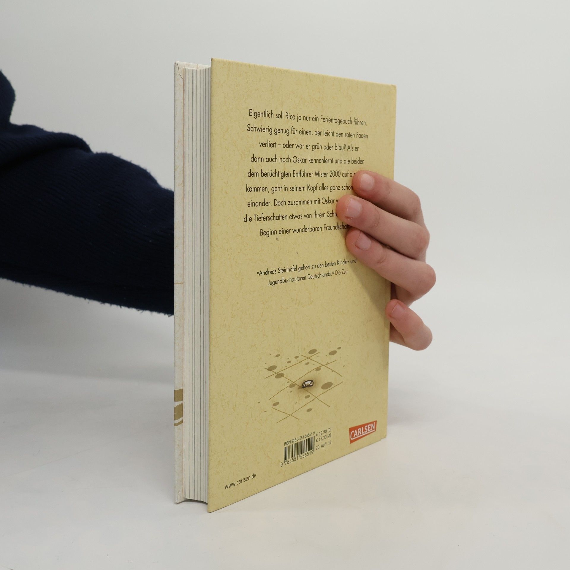Eigentlich soll Rico ja nur ein Ferientagebuch führen. Schwierig genug für einen, der leicht den roten oder den grünen oder auch den blauen Faden verliert. Aber als er dann auch noch Oskar mit dem blauen Helm kennen lernt und die beiden dem berüchtigten ALDI-Kidnapper auf die Spur kommen, geht es in seinem Kopf ganz schön durcheinander. Doch zusammen mit Oskar verlieren sogar die Tieferschatten etwas von ihrem Schrecken. Es ist der Beginn einer wunderbaren Freundschaft ... Alle Bücher über Rico und Oskar:Rico, Oskar und der Diebstahlstein Rico, Oskar und das Herzgebreche Rico, Oskar und die TieferschattenRico, Oskar und das Vomhimmelhoch Kindercomics:Rico & Oskar – Fische aus Silber Rico & Oskar – Die Regenhütte