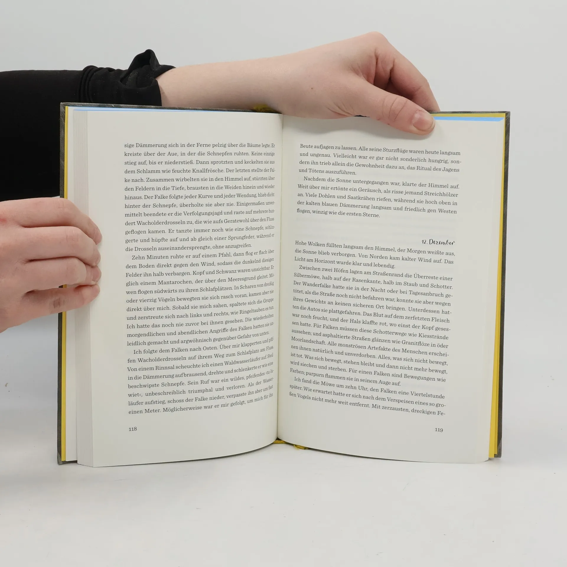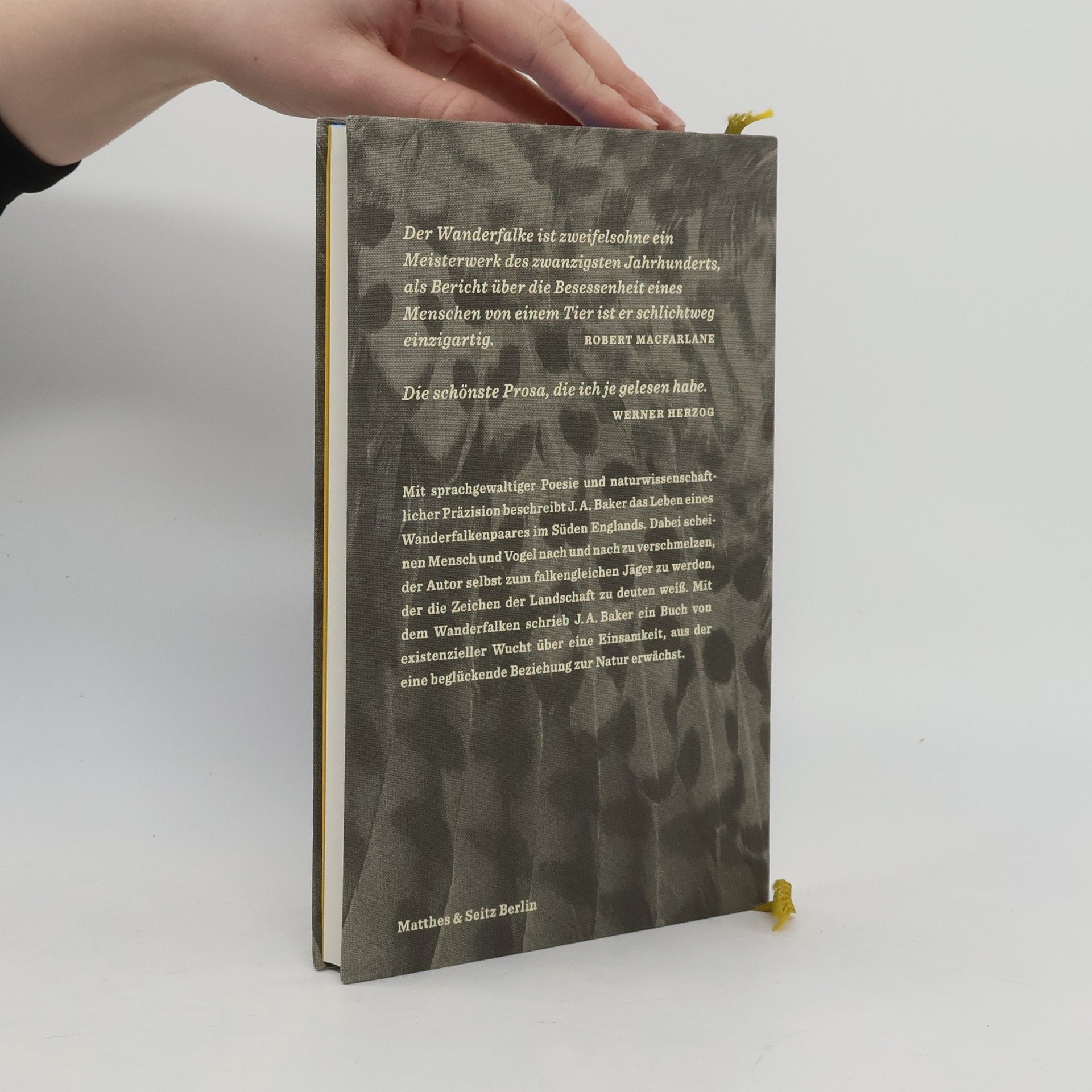 Wie kaum ein anderes Buch feiert dieses Meisterwerk der literarischen Naturbeobachtung die unerschöpfliche Vitalität der Natur. In den 1960 er Jahren war der Wanderfalke im Aussterben begriffen. In diesem Wissen beobachtete Baker über viele Jahre diese faszinierenden Vögel. Mit naturwissenschaftlicher Genauigkeit beschreibt er in seinem als Tagebuch angelegten Bericht das Leben eines Wanderfalkenpaares in Ostengland. Tag für Tag folgt er den beiden, beschreibt die Gewohnheiten und Ängste der Raubvögel mit einer beispiellosen Mischung aus Poesie und Präzision – wie besessen davon, dem Geheimnis ihrer Anmut auf die Spur zu kommen. Dabei scheinen im Laufe der Beobachtung Mensch und Vogel zu verschmelzen. Baker wird nach und nach selbst zum falkengleichen Jäger, der die Zeichen in der Landschaft zu deuten weiß. Dieses erstmals 1967 veröffentlichte, in einer dichten, poetischen und zugleich lakonischen Sprache verfasste Buch besitzt die unvergleichliche existenzielle Wucht der Einsamkeit, aus der eine beglückende Beziehung zur Natur, einer Region, zu einem Raubvogel erwächst.