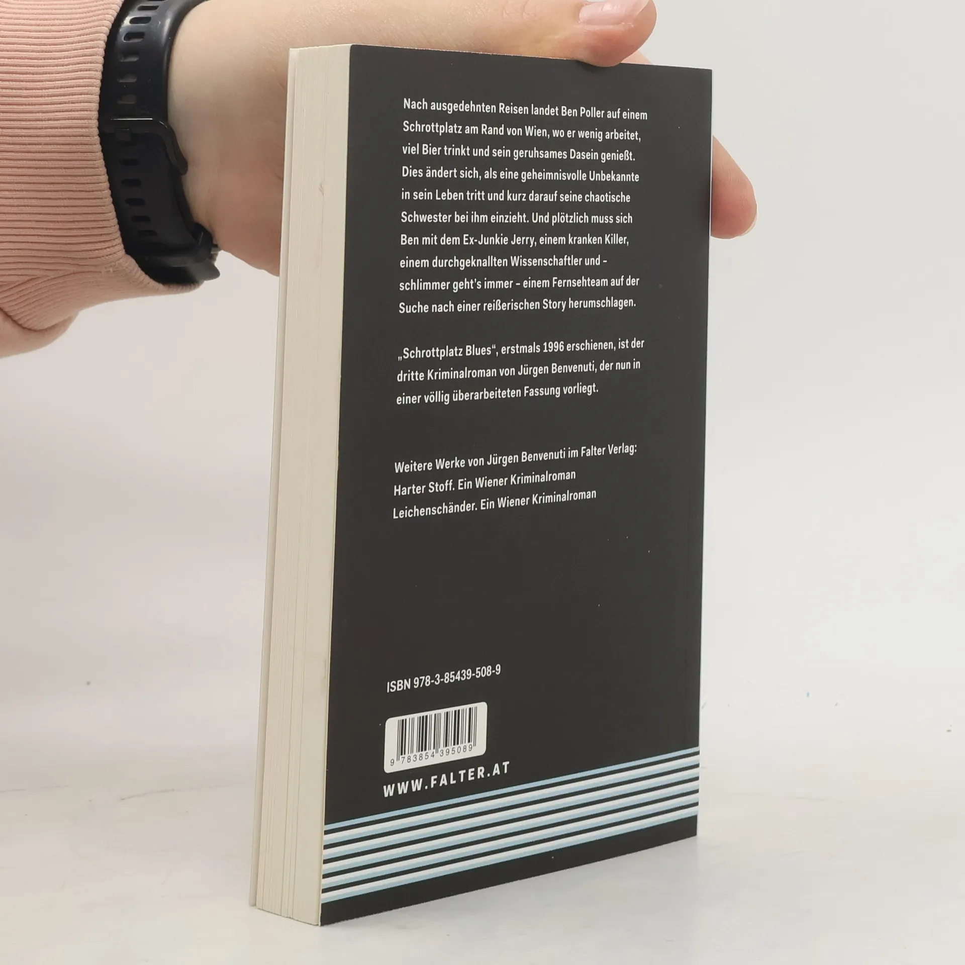 Nach ausgedehnten Reisen landet Ben Poller auf einem Schrottplatz am Rand von Wien, wo er wenig arbeitet, viel Bier trinkt und sein geruhsames Dasein genießt. Dies ändert sich, als eine geheimnisvolle Unbekannte in sein Leben tritt und kurz darauf seine chaotische Schwester bei ihm einzieht. Und plötzlich muss sich Ben mit dem Ex-Junkie Jerry, einem kranken Killer, einem durchgeknallten Wissenschaftler und – schlimmer geht’s immer – einem Fernsehteam auf der Suche nach einer reißerischen Story herumschlagen. „Schrottplatz Blues“, erstmals 1996 erschienen, ist der dritte Kriminalroman von Jürgen Benvenuti, der nun in einer völlig überarbeiteten Fassung vorliegt. Shortlist Leo-Perutz-Preis 2014