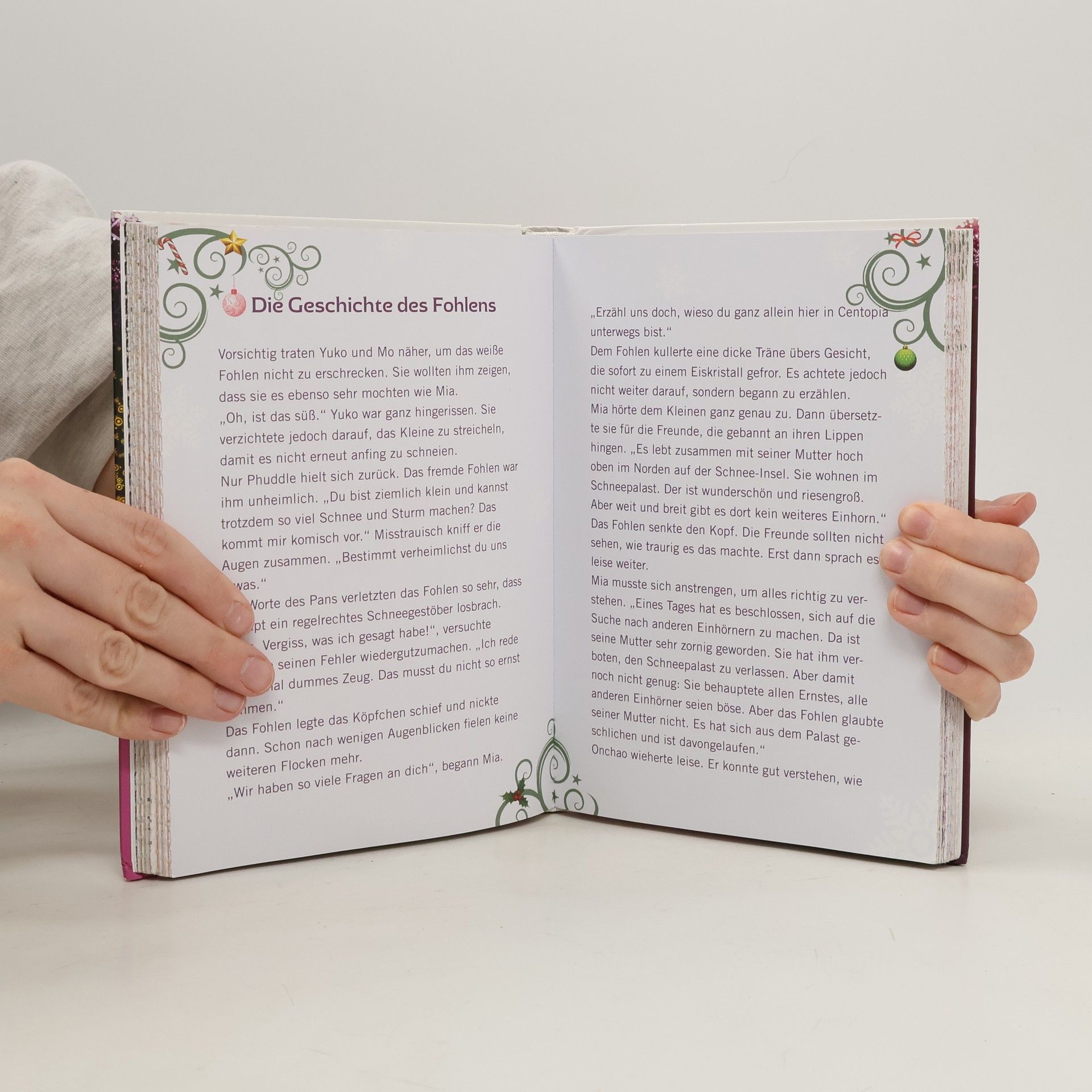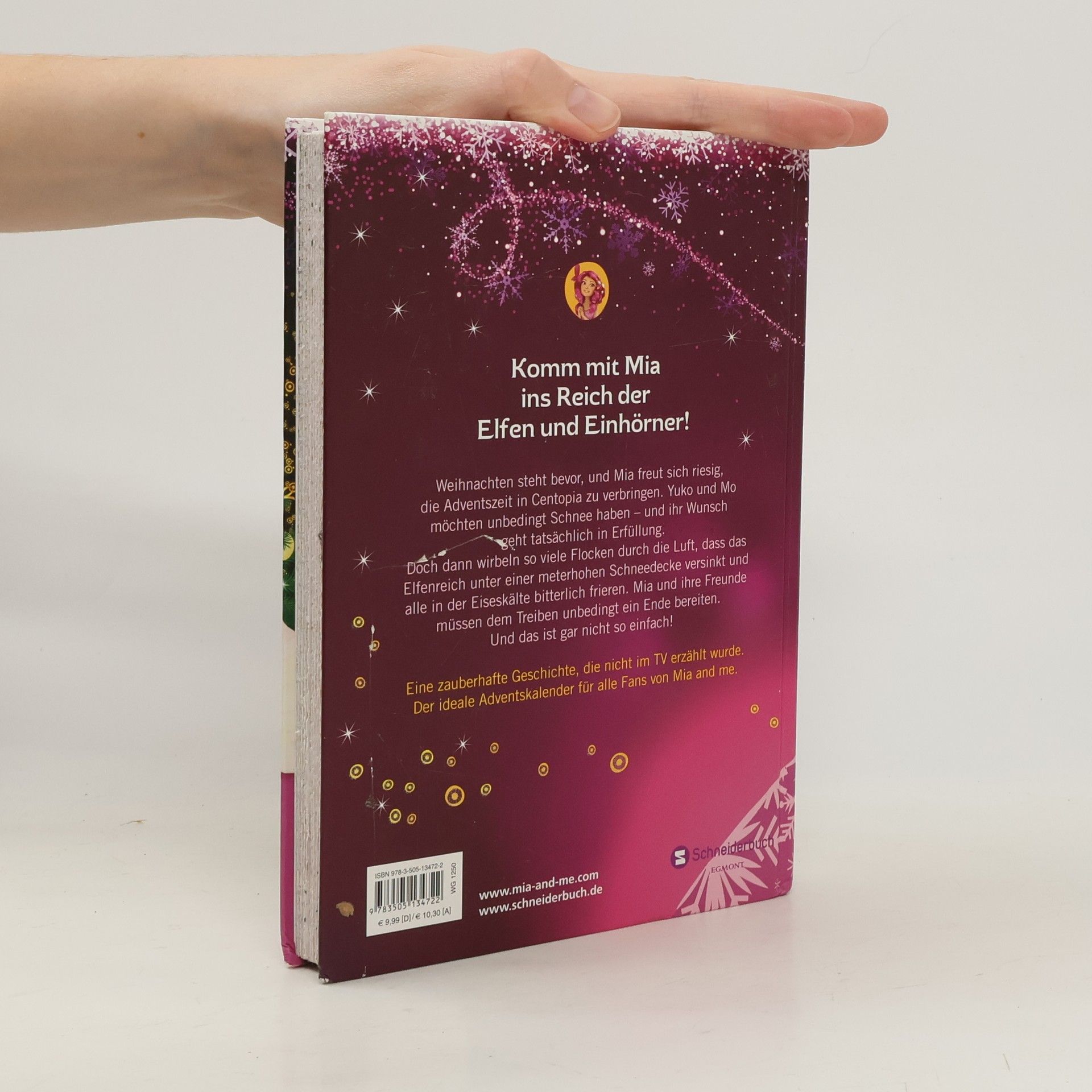Mia freut sich riesig, zur Adventszeit nach Centopia zu reisen. Als sie dort ankommt, ist das fantastische Elfenreich unter einer meterhohen Schneedecke versunken. Das Wasser-Einhorn und das Wind-Einhorn haben gemeinsam einen Riesenspaß, gewaltige Mengen von Schneeflocken durch die Luft wirbeln zu lassen. Doch die anderen Einhörner und die Elfen frieren in der Eiseskälte bitterlich. Zum Glück ist Mia nun da, die ihnen hilft und es schafft, dass alle zusammen ein wunderschönes Weihnachtsfest feiern.