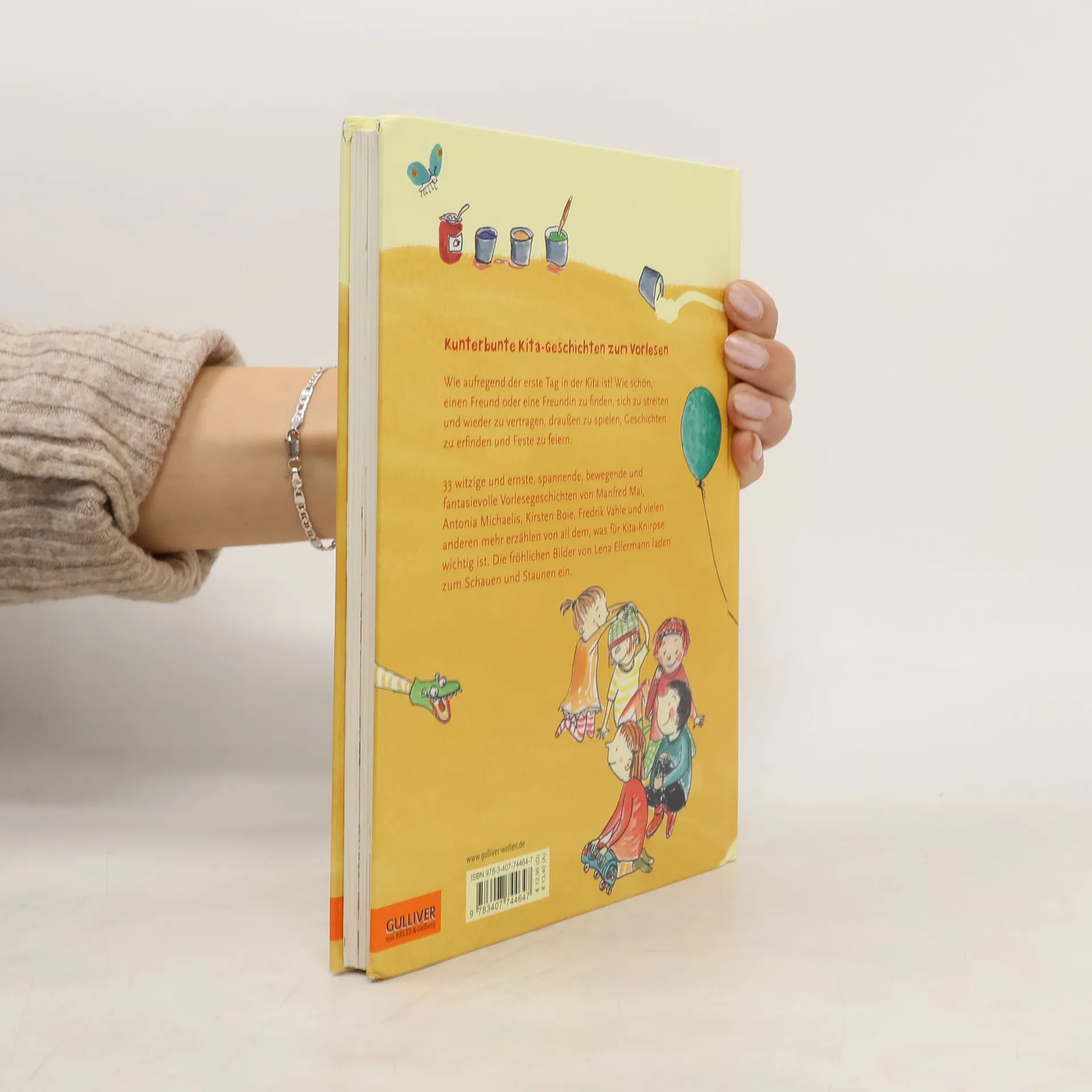 33 witzige und ernste, spannende, bewegende und fantasievolle Vorlesegeschichten für drei, vier oder fünf Minuten mit vielen bunten Bildern - zum Lauschen, Lachen und Anschauen. Wie aufregend der erste Tag in der Kita ist! Neu sein, zum ersten Mal ohne Mama und Papa. Und dann das Glücksgefühl, einen Freund oder eine Freundin zu finden. Sich streiten und wieder vertragen, das gehört dazu. Einem anderen helfen, Angst haben, Mut finden, rausgehen und spielen, Ausflüge machen und Feste feiern - das alles und noch viel mehr macht jeden Kita-Tag zum Abenteuer.