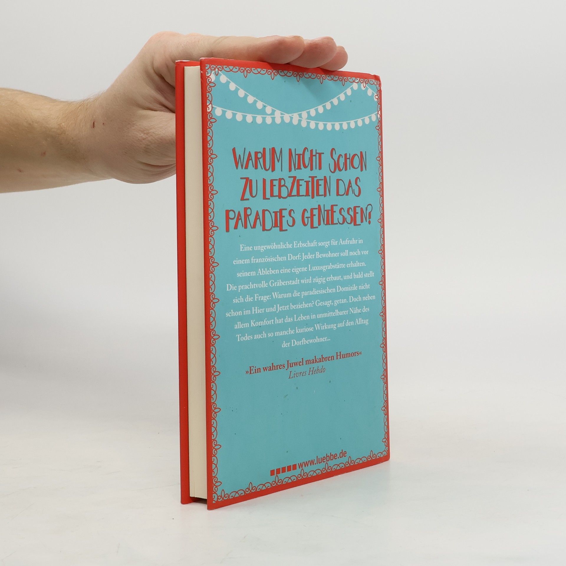 WARUM NICHT SCHON ZU LEBZEITEN DAS PARADIES GENIESSEN? Eine ungewöhnliche Erbschaft sorgt für Aufruhr in einem französischen Dorf: Jeder Bewohner soll bereits vor seinem Ableben eine eigene Luxusgrabstätte erhalten. Die prachtvolle Gräberstadt wird zügig erbaut, und bald stellt sich die Frage: Warum die paradiesischen Domizile nicht schon im Hier und Jetzt beziehen? Gesagt, getan. Doch das neue Leben in unmittelbarer Nähe des Todes hat neben allem Komfort auch so manche kuriose Wirkung auf den Alltag der Dorfbewohner... „Ein wahres Juwel makabren Humors“ Livres Hebdo