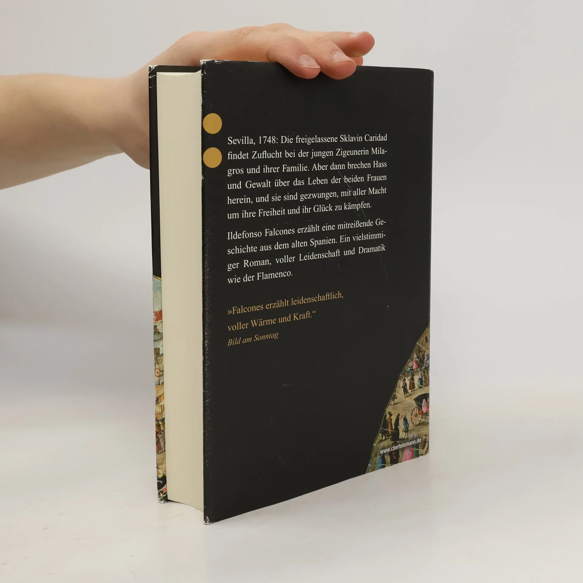 Sevilla 1748: Die freigelassene Sklavin Caridad findet, mittellos in einer ihr fremden Welt, Zuflucht bei der Zigeunerfamilie Vega. Hier freundet sie sich mit der jungen, schönen Sängerin Milagros an und gewinnt die Liebe von Melchor, dem stolzen Oberhaupt der Familie. Milagros verliebt sich fatalerweise in Pedro, dessen Familie schon seit langem mit den Vegas verfeindet ist. Ihr von Schicksalsschlägen gezeichneter Lebensweg führt sie vom sonnenverbrannten Andalusien in die prunkvolle Königsresidenz Madrid – hier wird die großartige Flamencotänzerin zur »barfüßigen Königin«. Ildefonso Falcones' opulenter, vielstimmiger Roman ist ganz große Oper: Er erzählt von Schmerz und Trauer, Liebe und Freundschaft , Hass und Verrat, Sehnsucht und Hoffnung – und von der Freiheit.