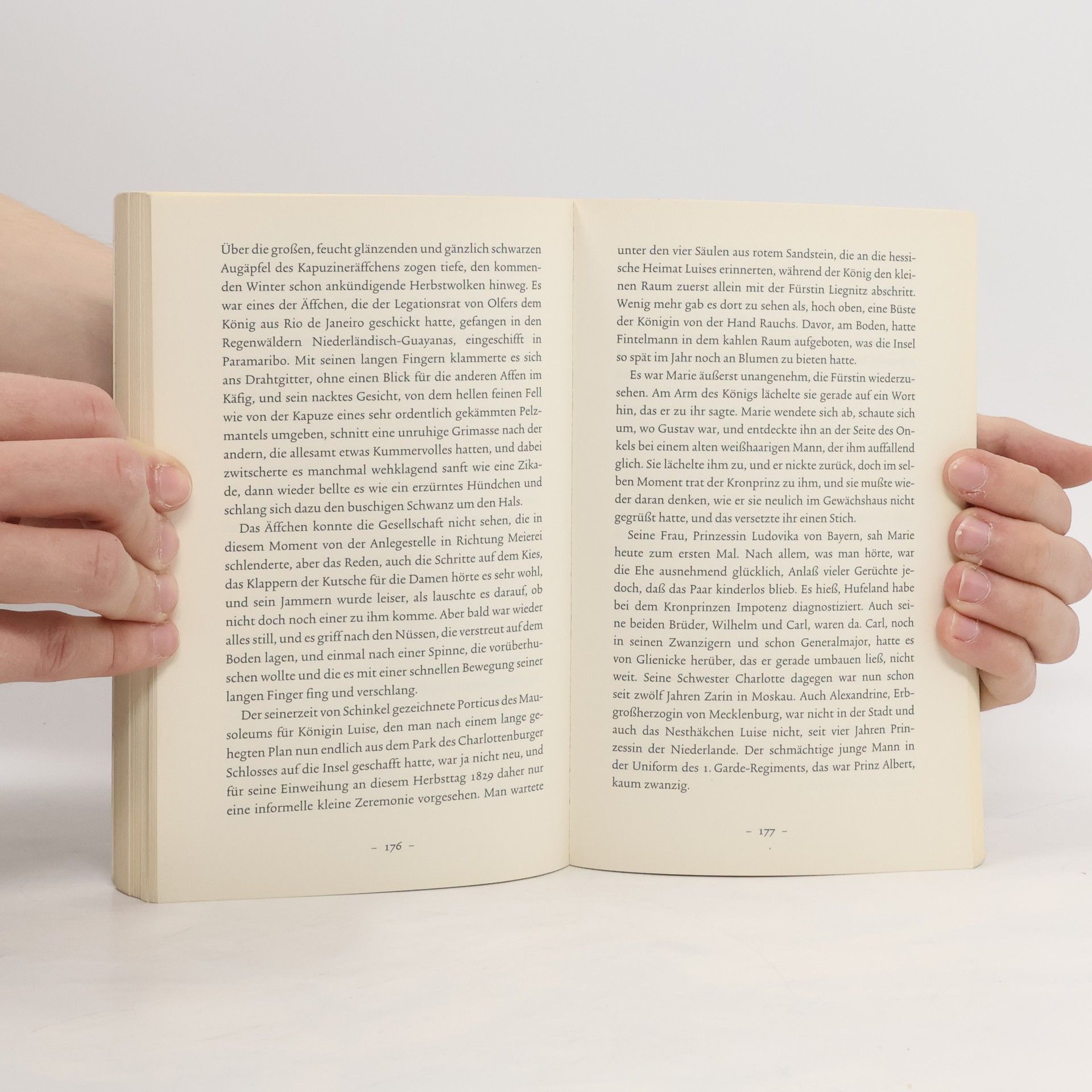 Es mutet an wie ein modernes Märchen: Alles beginnt mit einer Königin, die einen Zwerg trifft und sich fürchterlich erschrickt. Kaum acht Wochen später ist die junge Königin tot – und der kleinwüchsige Christian und seine Schwester Marie leben fortan weiter mit ihrem entsetzten Ausruf: »Monster!« Damit ist die Dimension dieser Geschichte eröffnet. Am Beispiel von Marie, die auf der Pfaueninsel zwischen den Befreiungskriegen und der Restauration, zwischen Palmenhaus und Menagerie, Gartenkunst und philosophischen Gesprächen aufwächst und der königlichen Familie bei deren Besuchen zur Hand geht, erzählt Thomas Hettche von der Zurichtung der Natur, der Würde des Menschen, dem Wesen der Zeit und der Empfindsamkeit der Seele und des Leibes – und nicht zuletzt von die Liebe in ihren mannigfaltigen Erscheinungsformen.