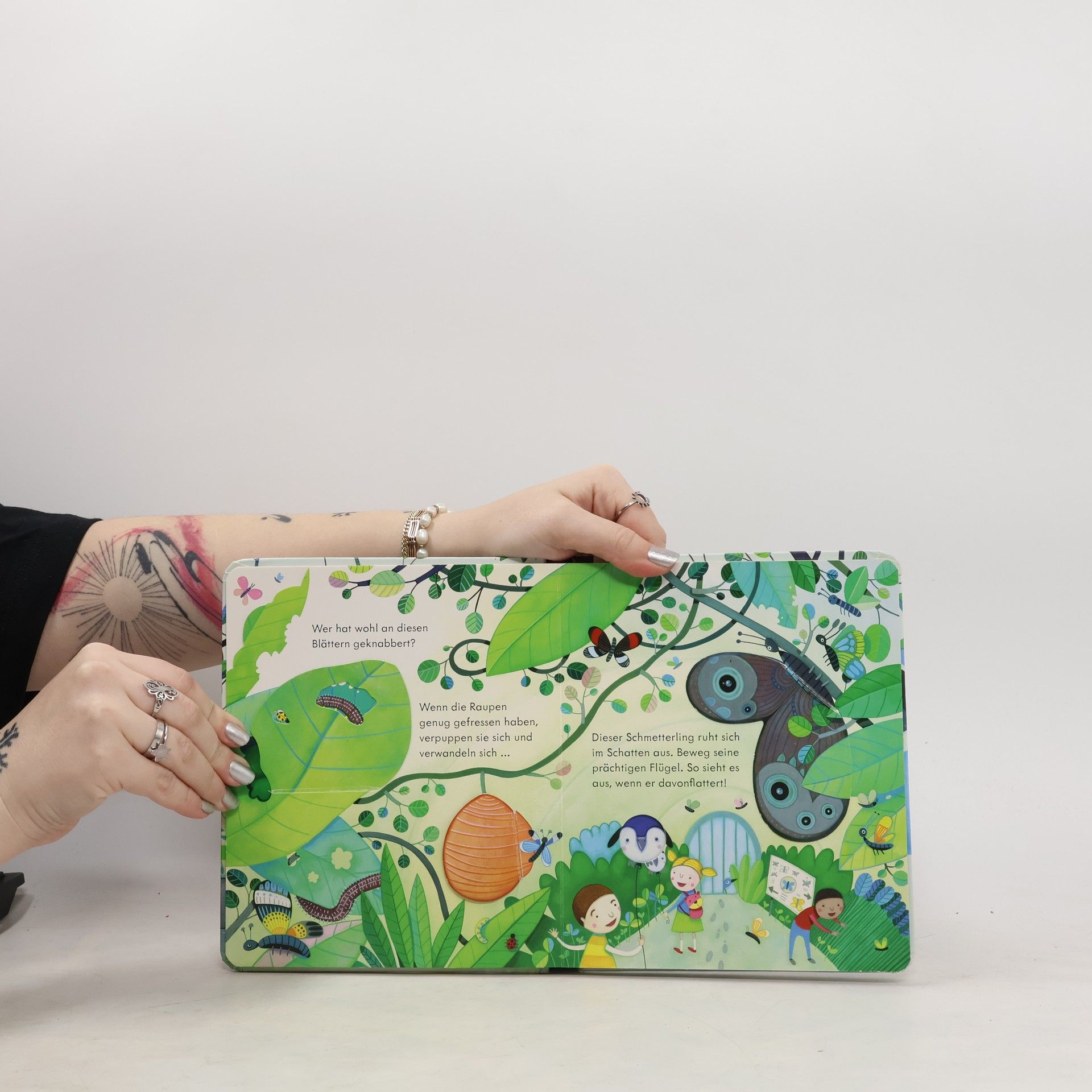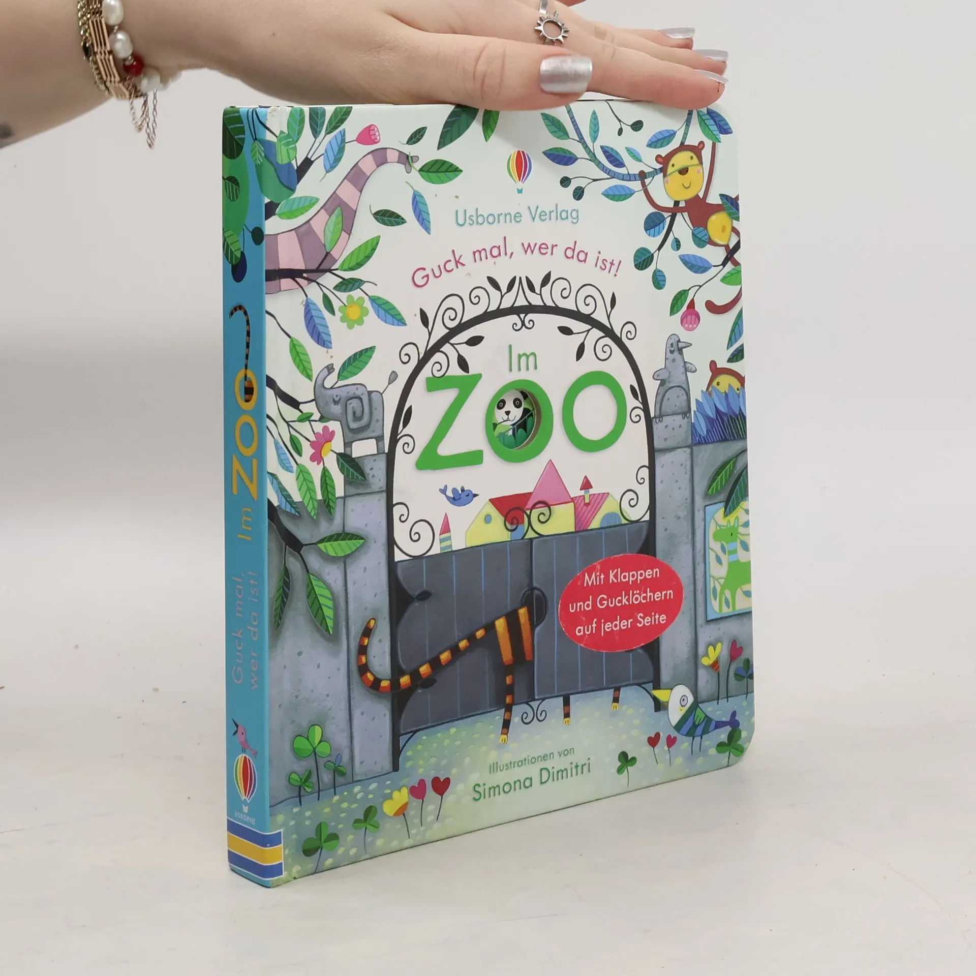Zauberhafte und kindgerechte Illustrationen Zauberhafte und kindgerechte Illustrationen Was tut sich in der Löwenhöhle? Und was hält der Gorilla in seinen starken Armen? Beim Spähen durch die Gucklöcher und durch das Öffnen der Klappen geben die Tiere des Zoos ihre Geheimnisse preis