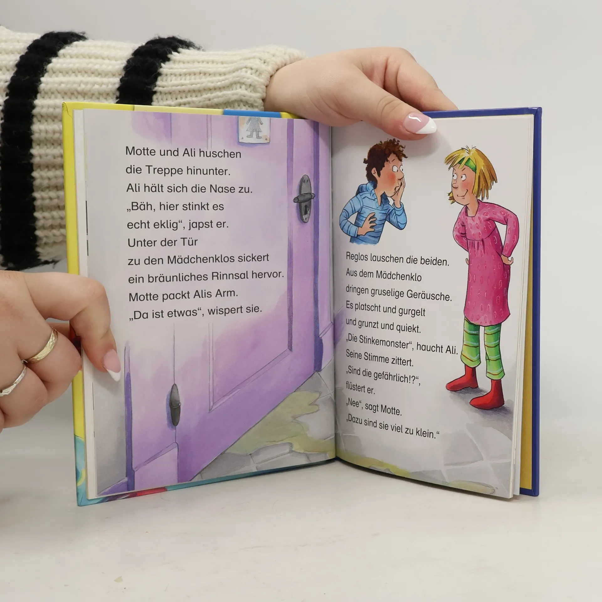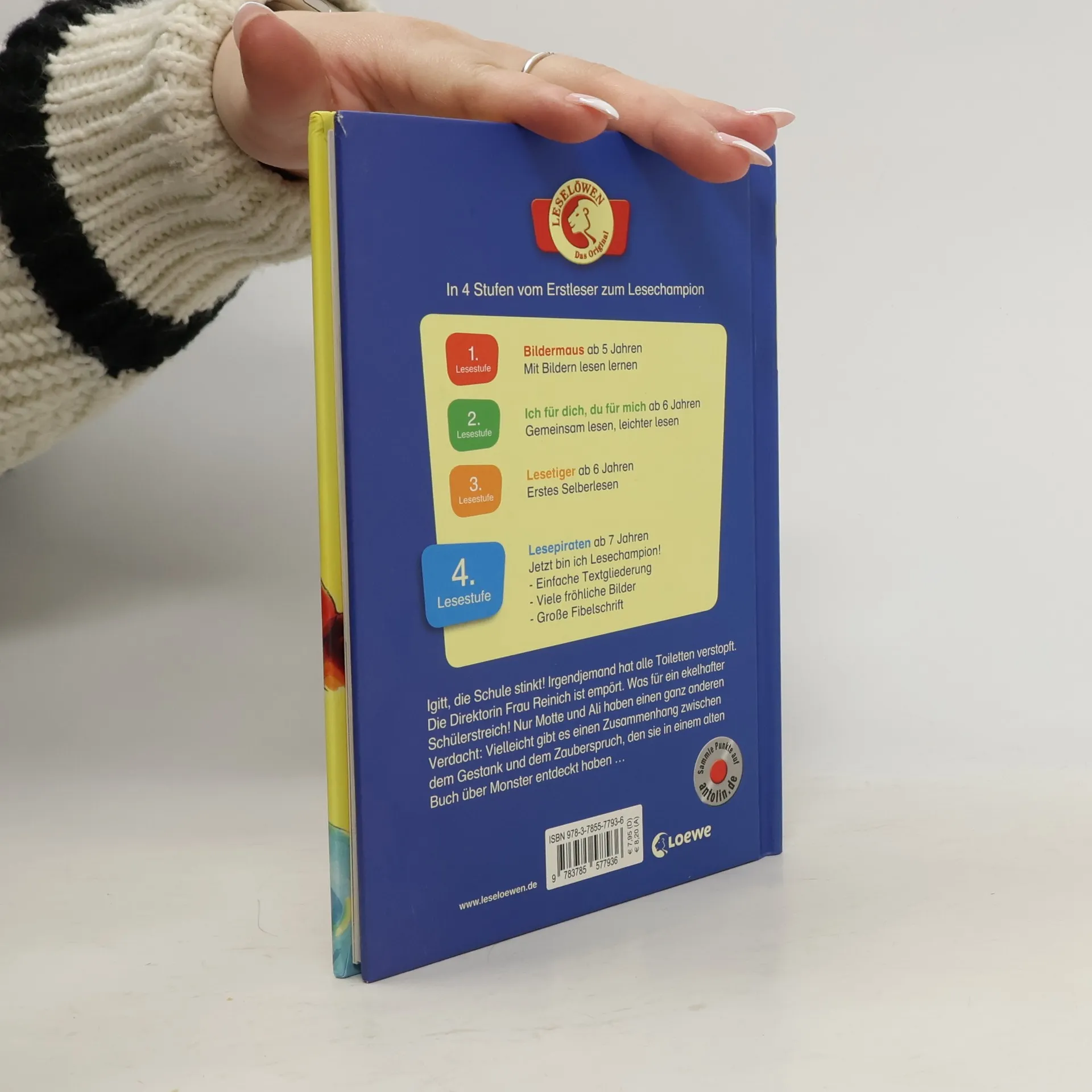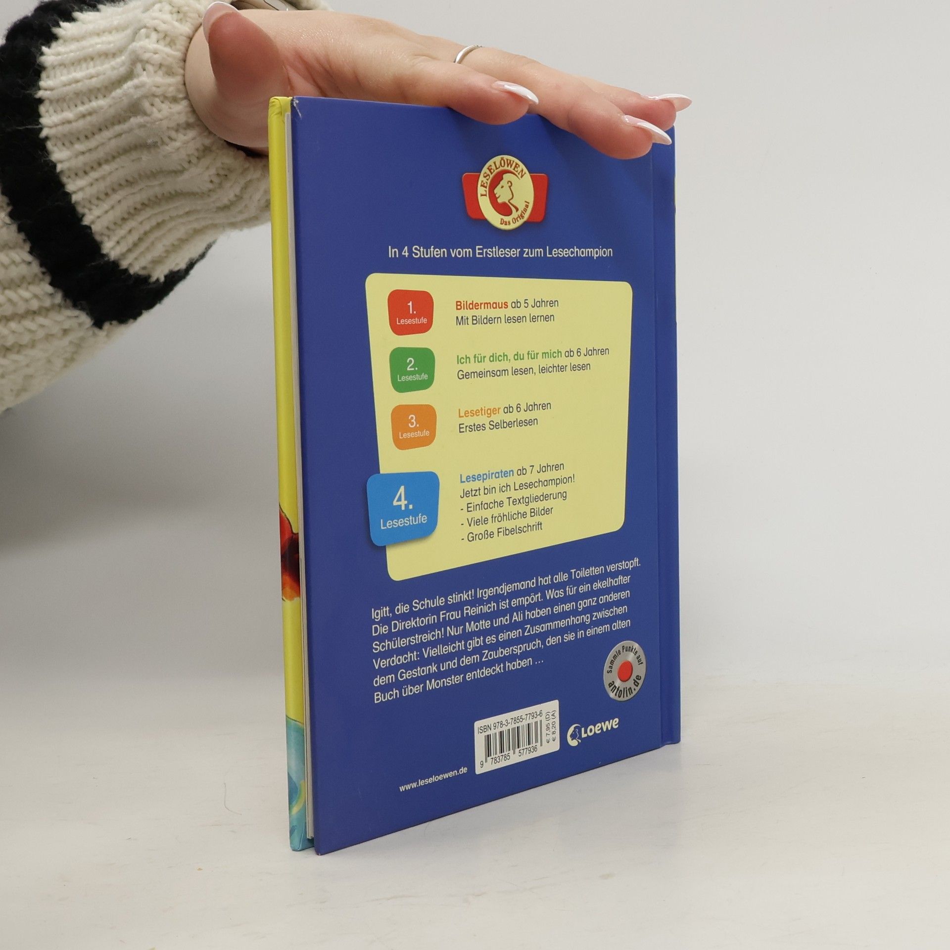 Igitt, die Schule stinkt! Irgendjemand hat alle Toiletten verstopft. Die Direktorin Frau Reinich ist empört. Was für ein ekelhafter Schülerstreich! Nur Motte und Ali haben einen ganz anderen Verdacht: Vielleicht gibt es einen Zusammenhang zwischen dem Gestank und dem Zauberspruch, den sie in einem alten Buch über Monster entdeckt haben … Dieses Kinderbuch aus der 4. Lesestufe Lesepiraten für Kinder ab 7 Jahren (1./2. Klasse) sorgt mit einfachen, kurzen Sätzen in Sinnzeilen und mit seiner großen Fibelschrift für schnellen Erfolg beim Lesenlernen. Die vielen bunten Bilder tragen zusätzlich zum Textverständnis bei. So macht lesen Spaß! Mehr über die Leselöwen, spannende Spiele und Leseproben unter www. leseloewen. de.