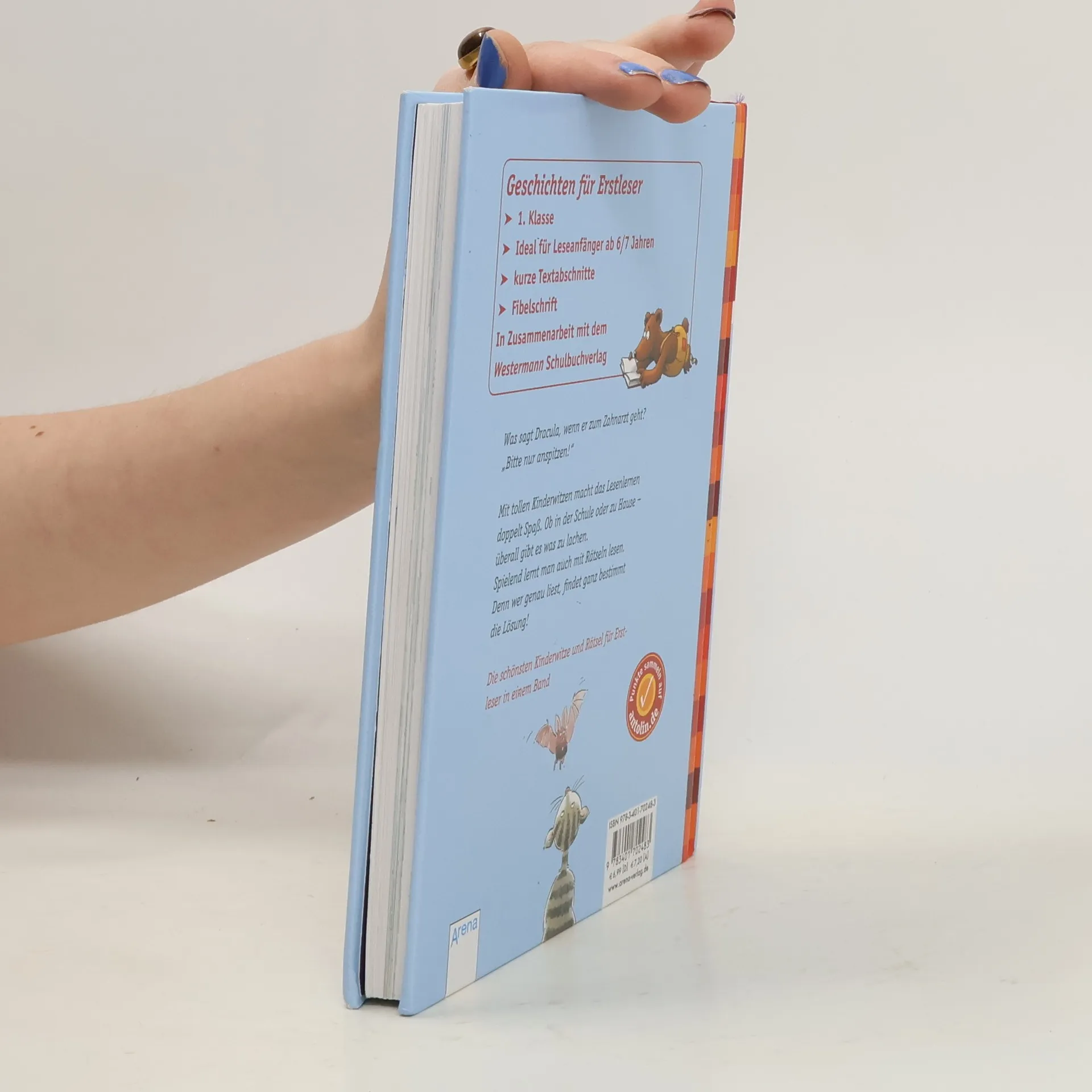 Was sagt Dracula, wenn er zum Zahnarzt geht? „Bitte nur anspitzen!“ Mit tollen Kinderwitzen macht das Lesenlernen doppelt Spaß. Ob in der Schule oder zu Hause - überall gibt es etwas zu lachen. Spielend lernt man auch mit Rätseln lesen. Denn wer genau liest, findet ganz bestimmt die Lösung. Die schönsten Kinderwitze und Rätsel für Erstleser in einem Band.