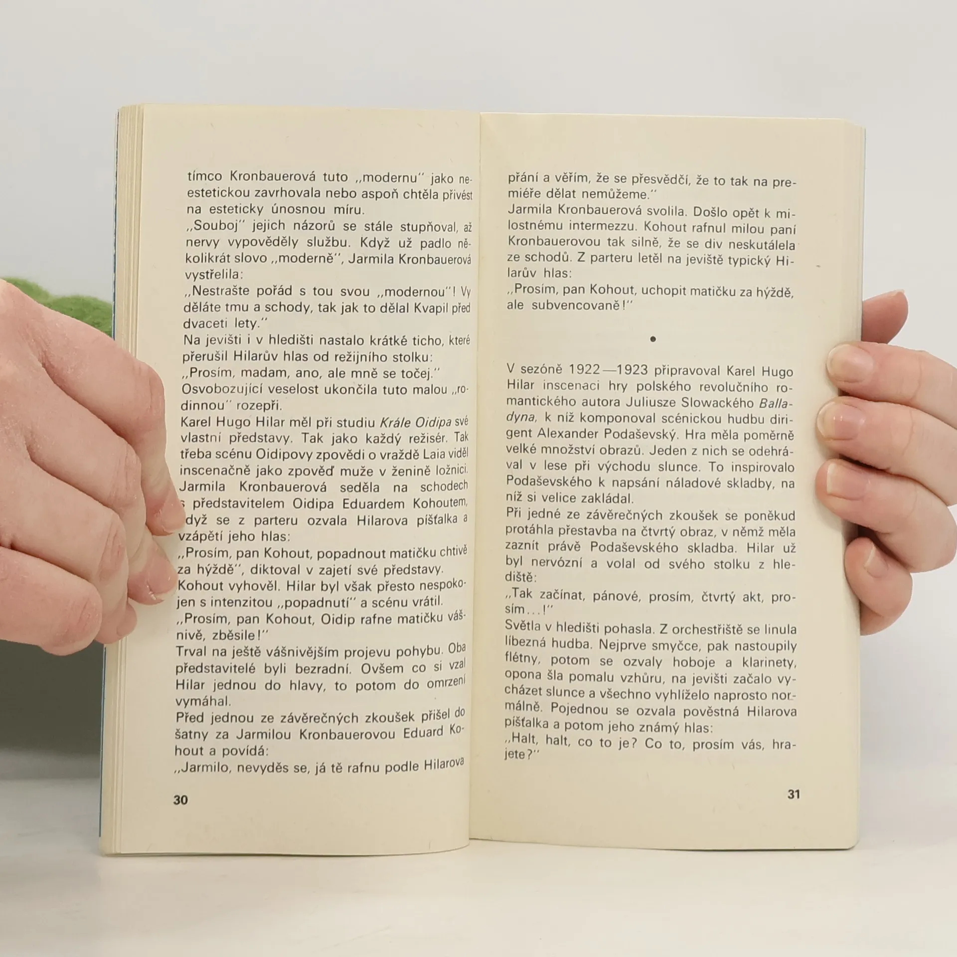 Veselé a úsměvné herecké historky a anekdoty. // Autor je posbíral a vyslechl v zákulisí nejrůznějších českých a slovenských divadel, známých herců i režisérů.