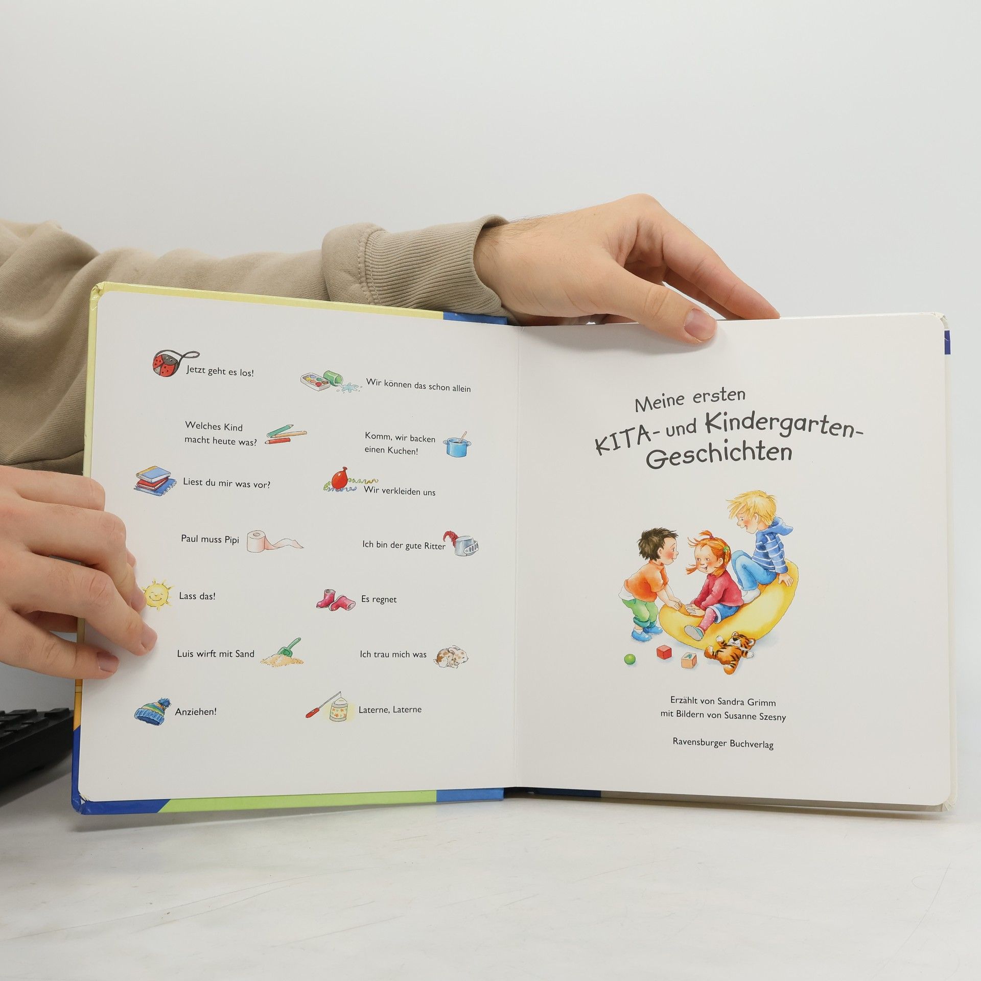 Im Kindergarten ist immer etwas los: Ob in der Kuschelecke, beim Malen oder im Waldkindergarten. In liebevoll illustrierten Geschichten erfahren die kleinen Zuhörer alles über die ersten kleinen und großen Abenteuer des Kindergartenalltags. Emma geht zum ersten Mal in die Kita, im Waldkindergarten regnet es, Paul findet einen neuen Freund und außerdem gibt es eine tolle Kostümparty. Hier laden 14 ganz unterschiedliche Geschichten zum Vorlesen und Entdecken ein. Kinder ab 2 Jahren erleben hier viele typische Situationen aus dem Alltag der Kita und dem Kindergarten. Das macht dieses Buch zum guten Begleiter in der Eingewöhnungsphase. Ob beim Vorlesen am Abend, beim Kuscheln oder einfach zwischendurch: Die Bücher der Ravensburger Kinderzimmerbibliothek dürfen in keinem Kinderzimmer fehlen.