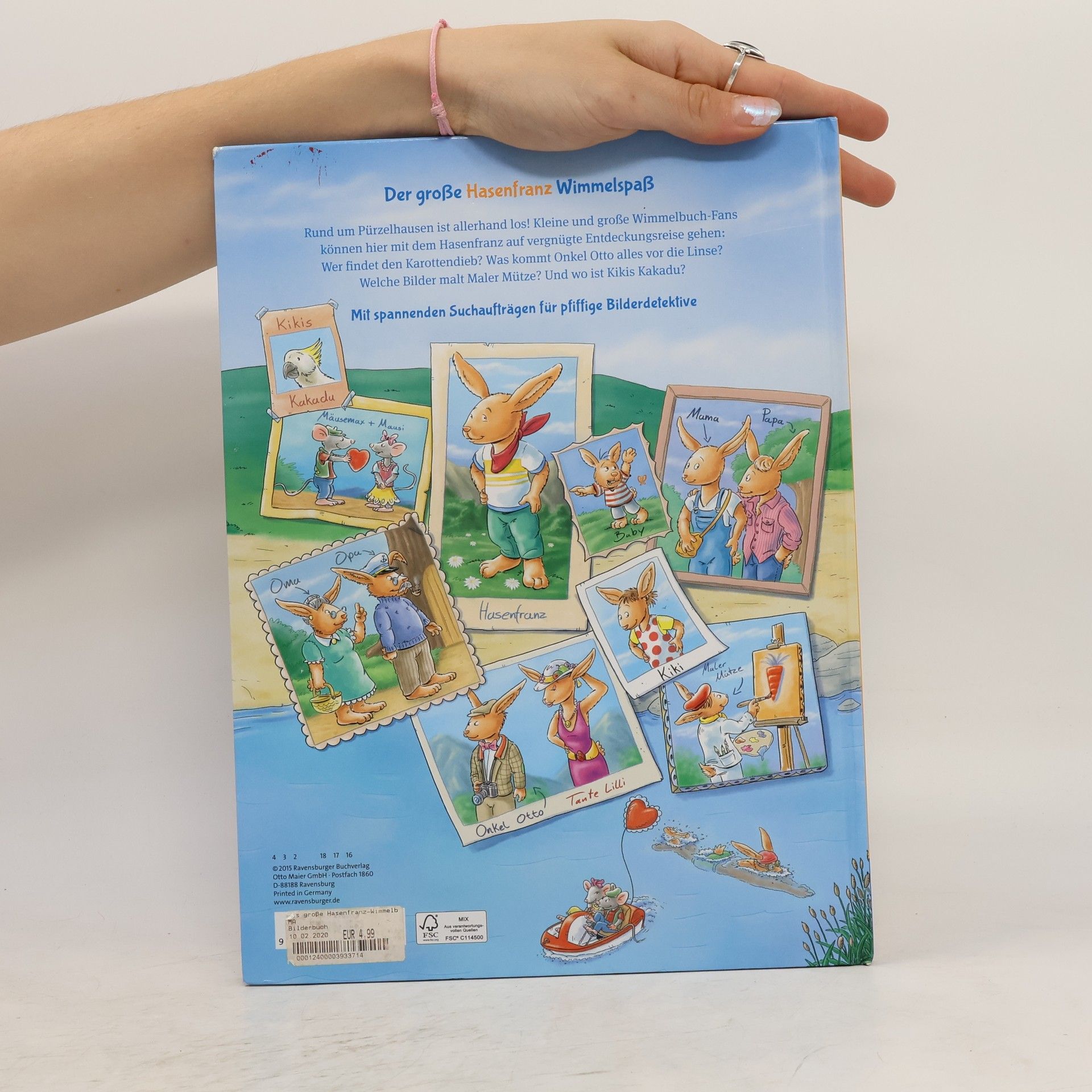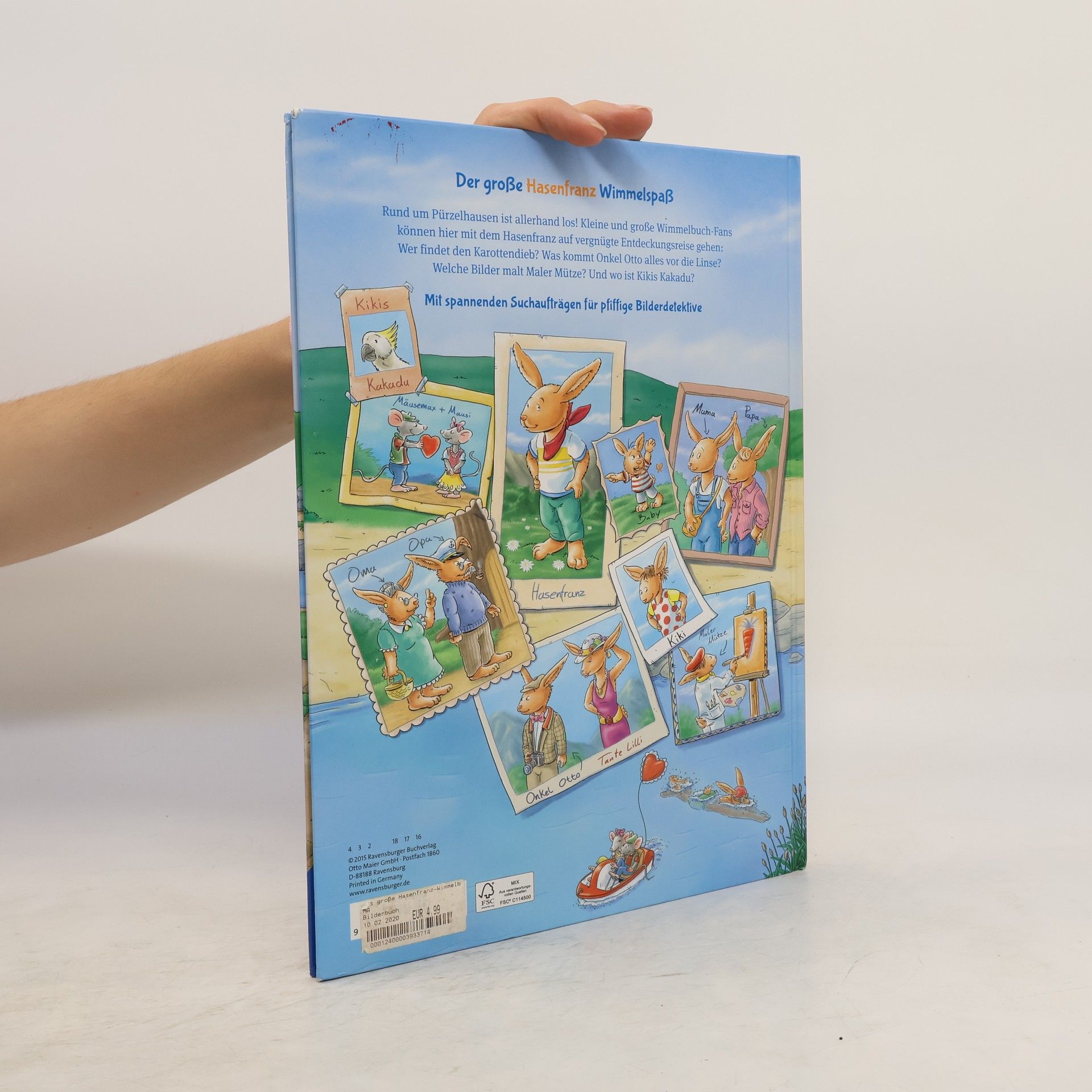 Das Wimmelbuch vom Hasenfranz für die vielen Fans und alle, die es noch werden. Elf supergroße Doppelseiten, die den pfiffigen Hasenfranz, seine Familie und alle Freunde aus Pürzelhausen durchs Jahr begleiten und viele lustige und liebenswerte Überraschungen verbergen. Was kommt Onkel Otto alles vor die Linse? Wer findet den Karottendieb? Und wo ist eigentlich der entflogene Kakadu? Mit unzähligen Suchaufträgen für schlaue Bilderdetektive!