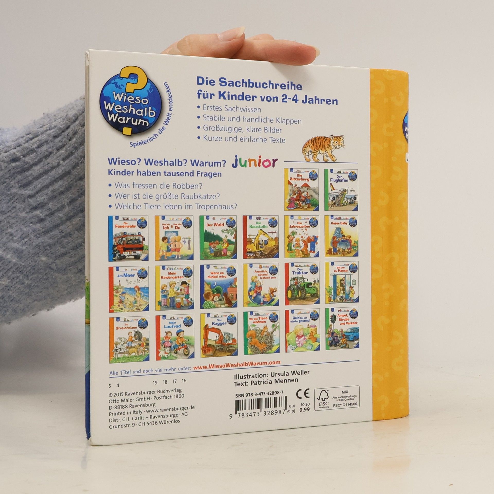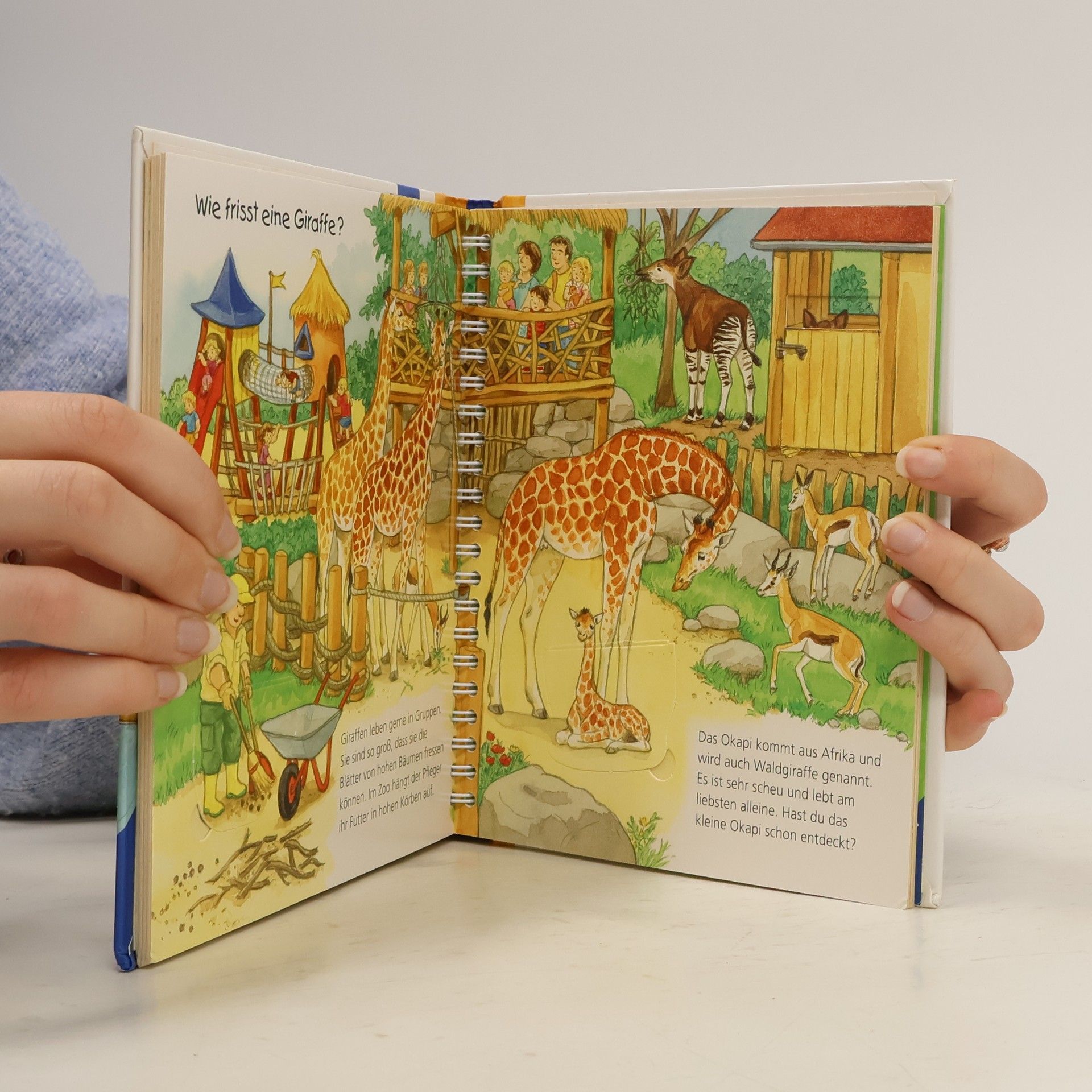 In diesem Buch besuchen die Geschwister Paul, Lilli und Nele mit ihren Eltern einen Zoo und bestaunen ihre Lieblingstiere aus der Nähe. Sie schauen den Elefanten und Pinguinen beim Baden zu, sind bei einer Seelöwenfütterung dabei und beobachten die Affen beim Klettern. Zahlreiche Klappen lassen die Tiere zum Leben erwecken. Dazu gibt es spannendes Sachwissen rund um den Zoo und die Lebensweise von Giraffen, Löwen, Erdmännchen und Co. Wieso? Weshalb? Warum? junior Die Sachbuchreihe für Kinder von 2-4 Jahren Jeden Tag entdecken Kinder etwas Neues – und haben viele Fragen. Wann kommt die Feuerwehr? Was machen die Tiere im Winter? Warum muss ich Zähne putzen? Die beliebte Sachbuchreihe Wieso? Weshalb? Warum? junior beantwortet die Fragen der Kinder auf Augenhöhe. Sie beleuchtet unterschiedlichste Themen aus ihrer Alltags- und Interessenswelt altersgerecht und mit viel Liebe zum Detail. Die Reihe ist speziell auf kleine Hände und die Bedürfnisse der Kleinsten angepasst. Klare und liebevolle Bilder, kurze Sachtexte sowie handliche Klappen, die Bewegungen veranschaulichen und überraschende und lustige Einblicke gewähren, ermöglichen Kindern, sich ihre Themen selbst zu erschließen. Der Spaß am eigenhändigen Entdecken, die liebevolle Umsetzung und die hochwertige Ausstattung garantieren langanhaltende Freude an jedem Buch.