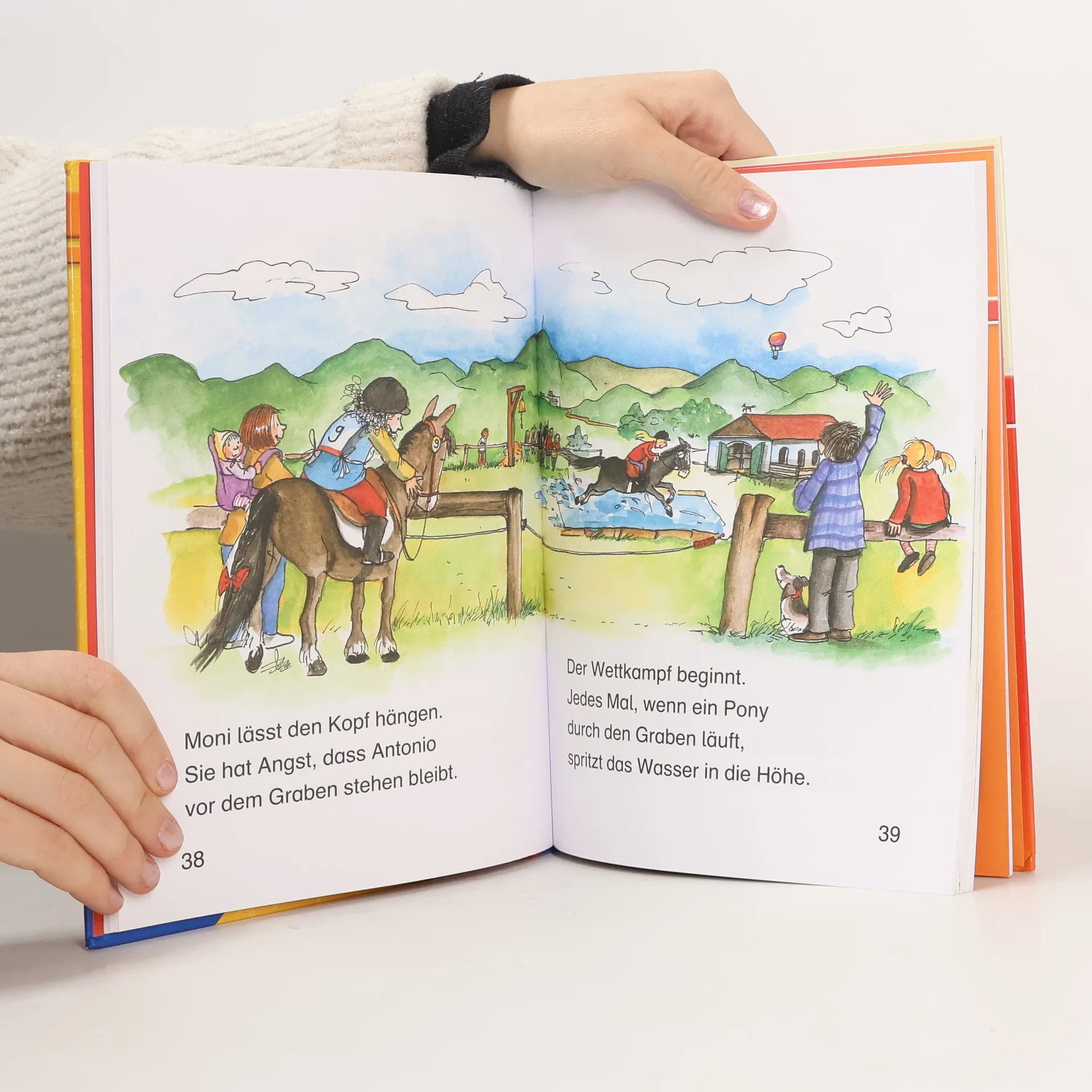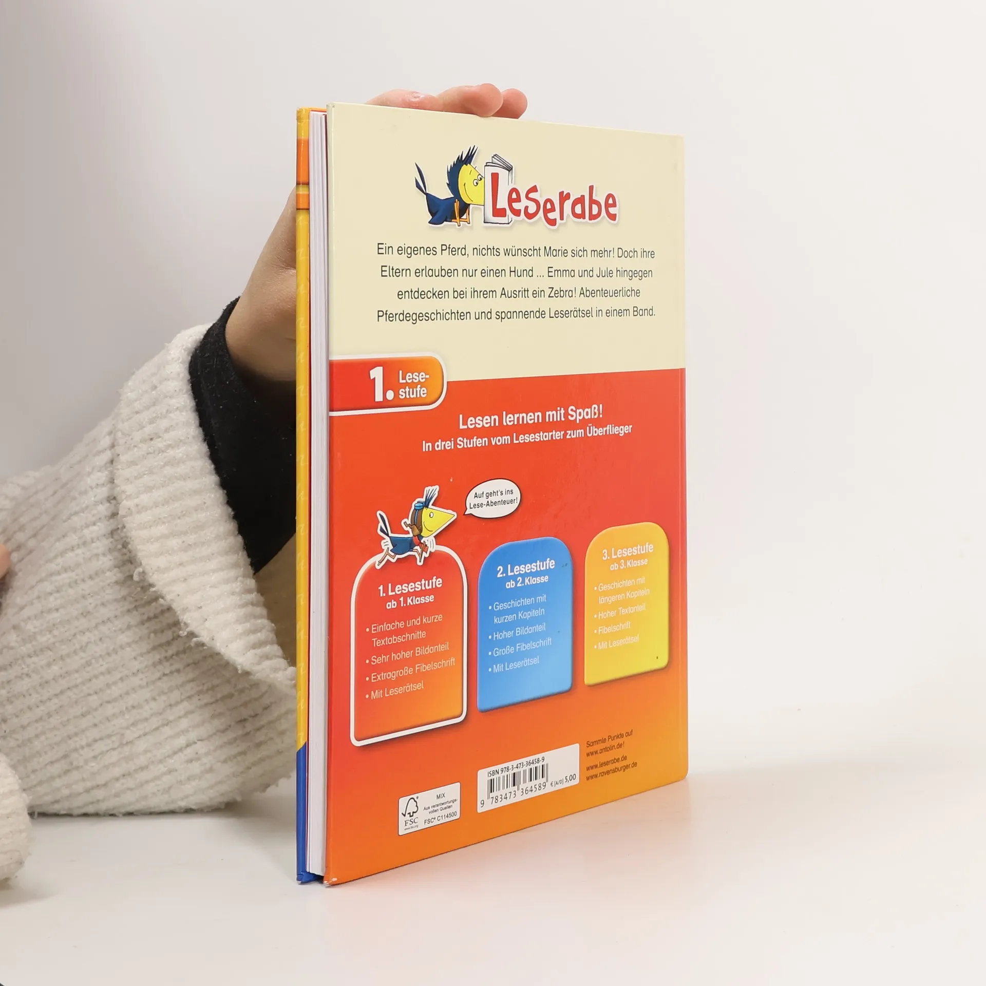 Ein eigenes Pferd, nichts wünscht Marie sich mehr. Warum will das neue Pony auf dem Ponyhof fast nichts fressen? Wird sich Pony Antonio beim Reitfest durch das Wasser trauen? Emma und Jule entdecken bei ihrem Ausritt ein Zebra. Lesen lernen wie im Flug! Die Kinderbücher der Reihe Leserabe – 1. Lesestufe wurden mit Pädagogen entwickelt und richten sich an Leseanfänger ab der 1. Klasse. Kurze Texte in großer Fibelschrift sichern erste Leseerfolge und steigern die Lesekompetenz von Mädchen und Jungen ab 6 Jahren. Empfohlen von Stiftung Lesen, gelistet bei Antolin. Weitere Informationen auf leserabe. de.