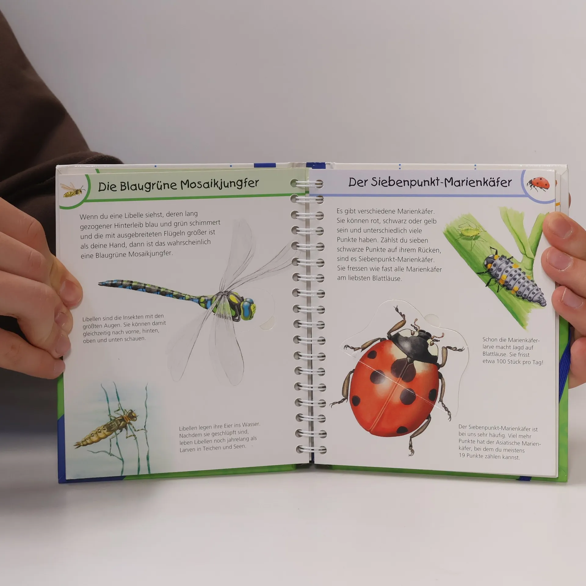 Vom Tagpfauenauge über den Hirschkäfer bis hin zur Erdhummel: Dieser Band erlaubt es den Kindern, 27 Tiere, die krabbeln, kriechen, hüpfen und fliegen aus nächster Nähe zu betrachten.