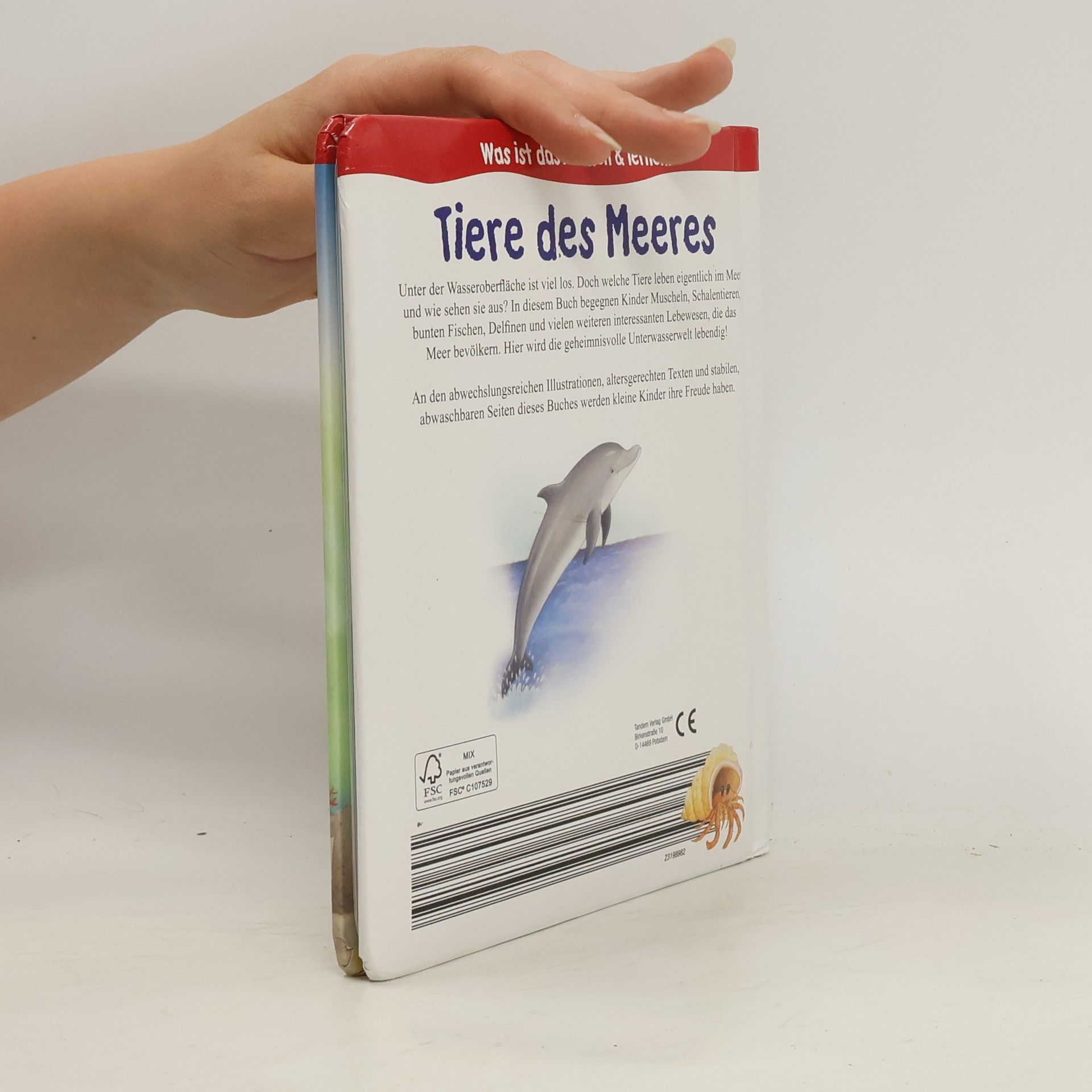 Unter der Wasseroberfläche ist viel los. Doch welche Tiere leben eigentlich im Meer und wie sehen sie aus? In diesem Buch begegnen Kinder Muscheln, Schalentieren, bunten Fischen, Delfinen und vielen weiteren interessanten Lebewesen, die das Meer bevölkern. Hier wird die geheimnisvolle Unterwasserwelt lebendig! An den abwechslungsreichen Illustrationen, altersgerechten Texten und stabilen, abwaschbaren Seiten dieses Buches werden kleine Kinder ihre Freude haben.