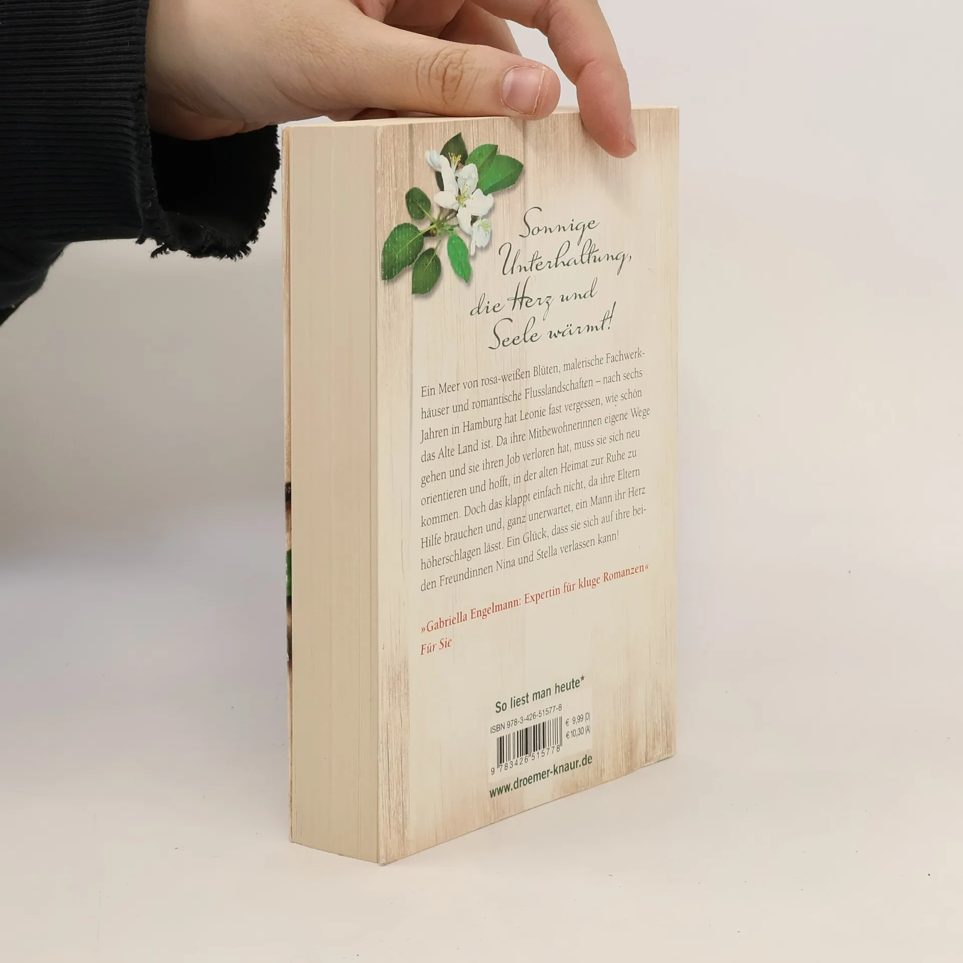 Spiegel-Bestseller-Autorin Gabriella Engelmann entführt ins Alte Land mit einer Geschichte über eine krisenerprobte Frau, die mitten im Leben steht. Nach sechs Jahren in ihrer „Freundinnen-WG“ in Hamburg hat Leonie fast vergessen, wie schön das Alte Land ist. Kurz nach ihrem 41. Geburtstag ändert sich ihr Leben schlagartig: Sie verliert ihren Job, ihre Freundinnen ziehen aus der gemeinsamen Villa an der Elbe aus, und der Traummann bleibt aus. Als ihre Mutter plant, den Vater wegen einer Reise zu verlassen, beschließt Leonie, in ihre Heimat zurückzukehren. Glücklicherweise kann sie auf ihre beiden Freundinnen Nina und Stella zählen, die sie unterstützen. Unter Apfelblüten trifft sie unerwartet einen Mann, der ihr Herz höher schlagen lässt. Eine aufregende Zeit voller Entscheidungen beginnt. Wer ein Buch mit liebenswerten Figuren sucht, das große Frauenthemen wie Neuorientierung, späte Mutterschaft, Liebe und Freundschaft behandelt, wird hier fündig. Der Roman ist nicht nur eine berührende Geschichte, sondern auch ein besonderer Reiseführer durch das Alte Land, der mit Kuchenrezepten im Anhang aufwartet. Gabriella Engelmanns Werk über Leonie, die ihr Glück im Alten Land findet, bezaubert mit Herz, Hirn und Apfelrezepten – ein perfektes Buch zum Entspannen und Abtauchen.