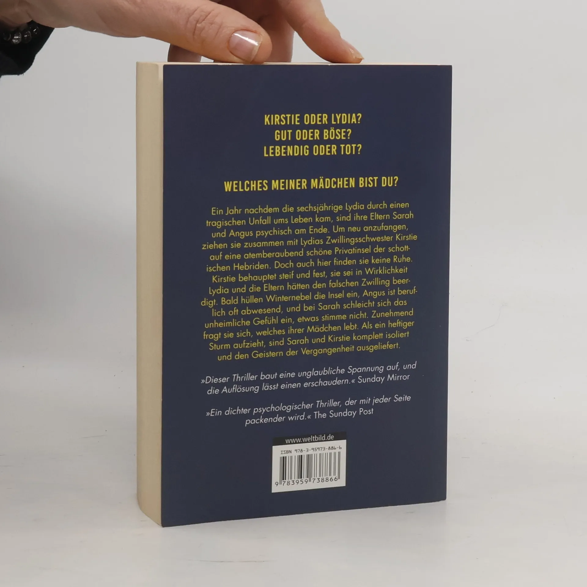 Ein Jahr nachdem die sechsjährige Lydia durch einen tragischen Unfall ums Leben kam, sind ihre Eltern Sarah und Angus psychisch am Ende. Um neu anzufangen, ziehen sie zusammen mit Lydias Zwillingsschwester Kirstie auf eine atemberaubend schöne Privatinsel der schottischen Hebriden. Doch auch hier finden sie keine Ruhe. Kirstie behauptet steif und fest, sie sei in Wirklichkeit Lydia, die Eltern hätten den falschen Zwilling beerdigt. Bald hüllen Winternebel die Insel ein, Angus ist beruflich oft abwesend, und bei Sarah schleicht sich das unheimliche Gefühl ein, etwas stimme nicht. Zunehmend fragt sie sich, welches ihrer Mädchen lebt. Als ein heftiger Sturm aufzieht, sind Sarah und Kirstie komplett isoliert und den Geistern der Vergangenheit ausgeliefert.