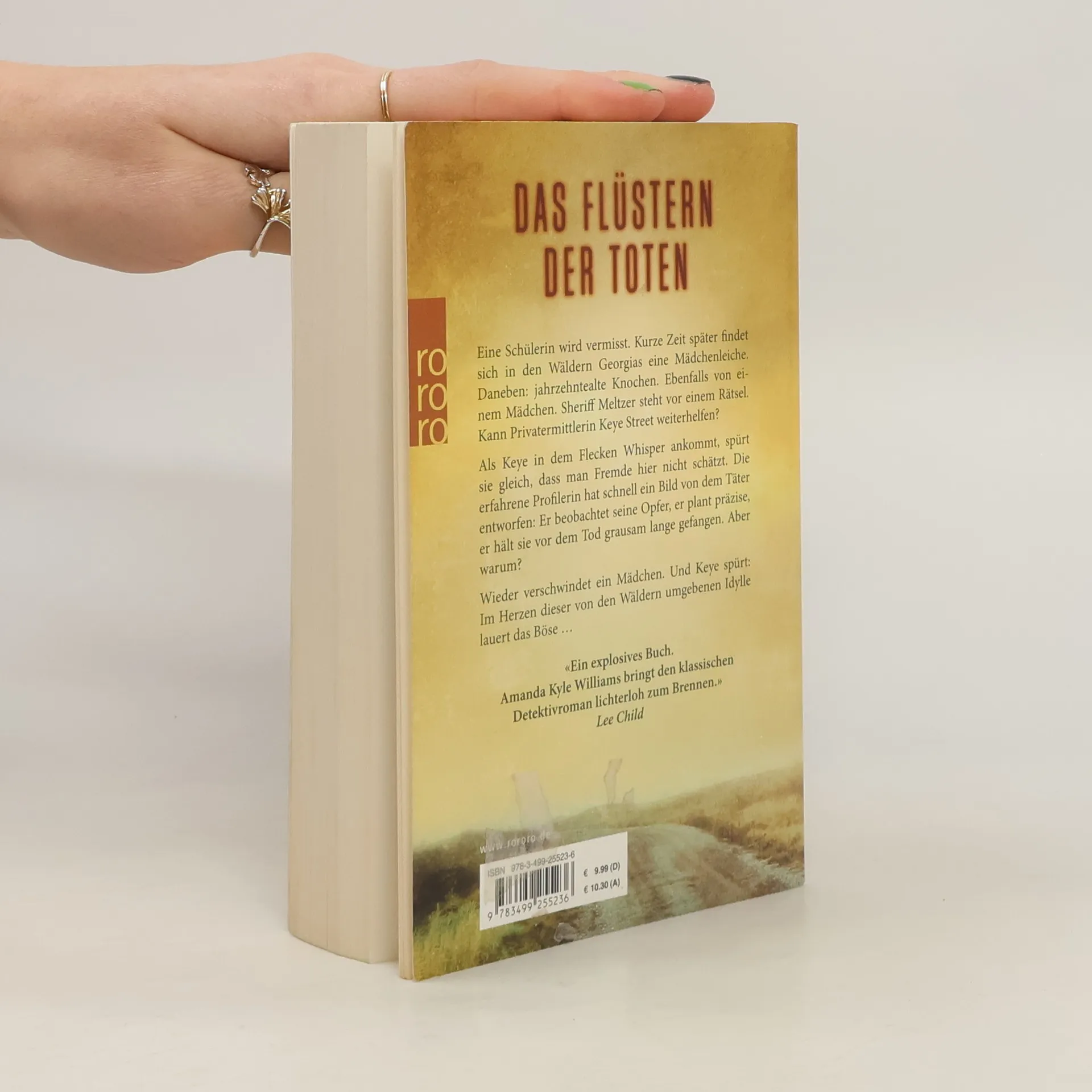 Das Flüstern der Toten Eine Schülerin wird vermisst. Kurze Zeit später findet sich in den Wäldern Georgias eine Mädchenleiche. Daneben: Jahrzehnte alte Knochen. Ebenfalls von einem Mädchen. Sheriff Meltzer steht vor einem Rätsel. Kann Privatermittlerin Keye Street weiterhelfen?Als Keye in dem Flecken Whisper ankommt, spürt sie gleich, dass man Fremde hier nicht schätzt. Die erfahrene Profilerin hat schnell ein Bild von dem Täter entworfen: Er beobachtet seine Opfer, er plant präzise, er hält sie vor dem Tod grausam lange gefangen. Aber warum? Wieder verschwindet ein Mädchen. Und Keye spürt: Im Herzen dieser von den Wäldern umgebenen Idylle lauert das Böse…