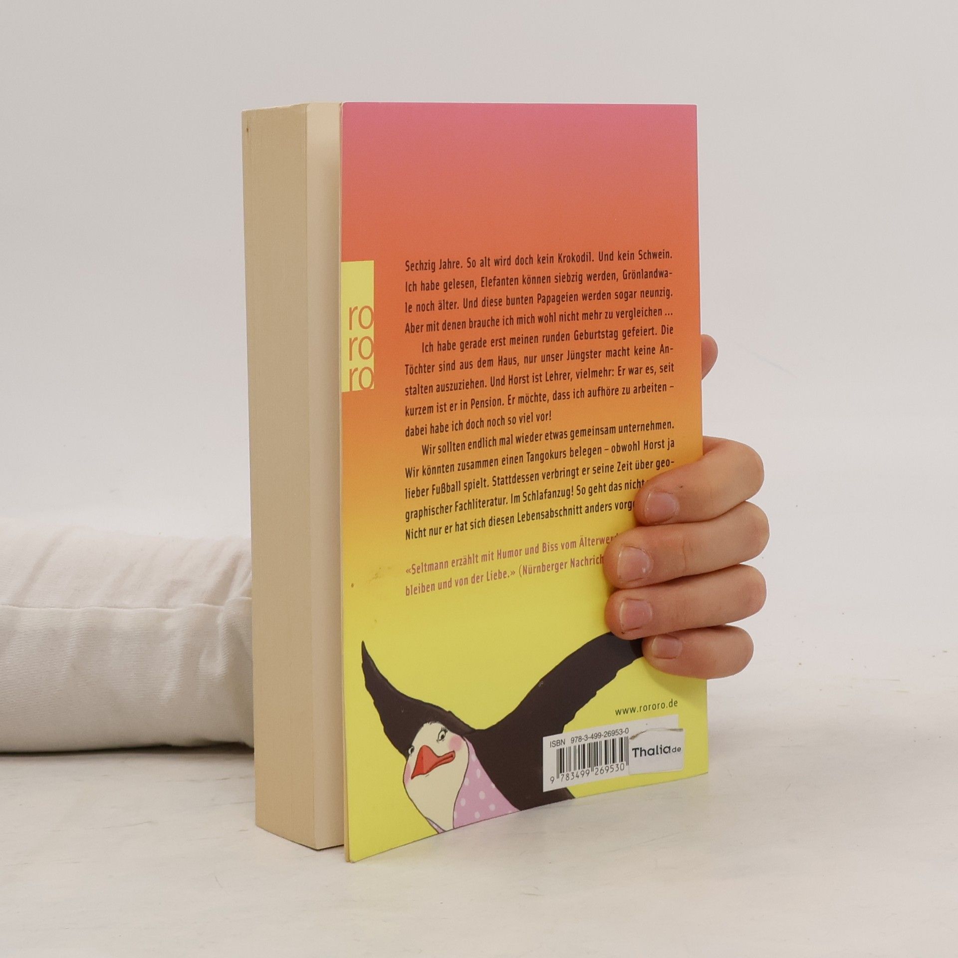 Sechzig Jahre. So alt wird doch kein Krokodil. Und kein Schwein. Ich habe gelesen, Elefanten können siebzig werden, Grönlandwale noch älter. Und diese bunten Papageien werden sogar neunzig. Aber mit denen brauche ich mich wohl nicht mehr zu vergleichen ...Ich habe gerade erst meinen runden Geburtstag gefeiert. Die Töchter sind aus dem Haus, nur unser Jüngster macht keine Anstalten, auszuziehen. Und Horst ist Lehrer, vielmehr: er war es, seit kurzem ist er in Pension. Er möchte, dass ich aufhöre zu arbeiten - dabei habe ich doch noch so viel vor!Wir sollten endlich mal wieder etwas gemeinsam unternehmen. Wir könnten zusammen einen Tangokurs belegen - obwohl Horst ja lieber Fußball spielt. Stattdessen verbringt er seine Zeit über geographischer Fachliteratur. Im Schlafanzug! So geht das nicht weiter. Nicht nur er hat sich diesen Lebensabschnitt anders vorgestellt ...