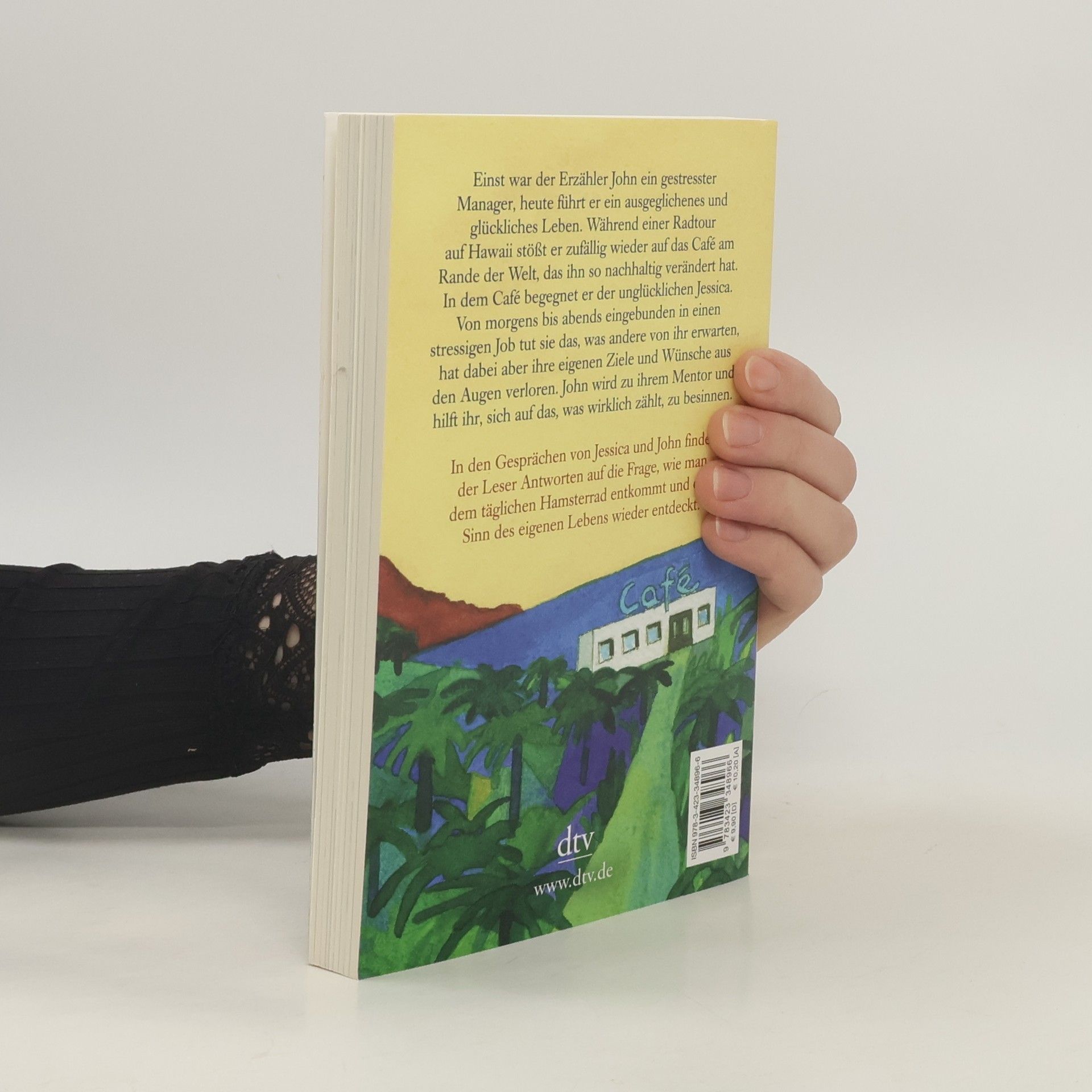 Inspirationen fürs eigene Leben Einst war der Erzähler John ein gestresster Manager, heute führt er ein ausgeglichenes und glückliches Leben. Während einer Radtour auf Hawaii erinnert sich John an den Tag vor zehn Jahren, der sein Leben radikal verändert hat. Damals war er zufällig auf das Café am Rande der Welt gestoßen. Und obwohl er sich an einem völlig anderen Ort befindet, Tausende Kilometer entfernt, sieht er es plötzlich wieder. In dem Café begegnet er Jessica, die unglücklich mit ihrem Leben ist. Eingebunden in ein stressiges Arbeitsleben, tut sie das, was andere von ihr erwarten, hat dabei aber ihre eigenen Ziele und Wünsche aus den Augen verloren. John wird zu ihrem Mentor und hilft ihr, sich auf den Sinn ihres Lebens zu besinnen. In den Gesprächen von Jessica und John findet der Leser Antworten auf die Frage, wie man dem täglichen Hamsterrad entkommt und den Sinn des eigenen Lebens wieder entdeckt. Wunderbar vierfarbig illustriert von Root Leeb.