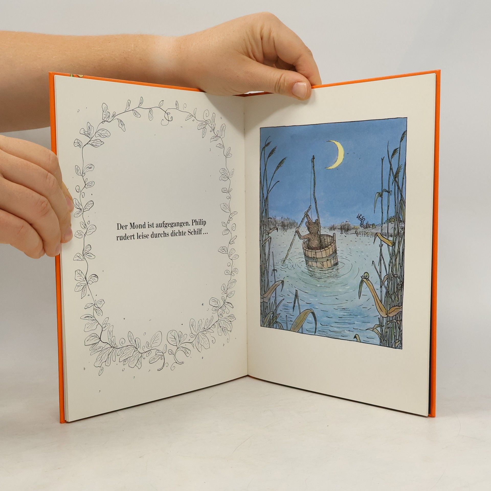 Es ist tiefe Nacht, im Sumpf schläft alles. Nur einer ist putzmunter: Philip Schnauze! Der hat sich klammheimlich davongeschlichen. In Mutters Bottich, ausgerüstet mit Totenkopfflagge und Holzschwert, macht er sich auf den Weg zum großen, weiten Meer. Sein Plan: Seeräuber werden! Ein berühmter Piratenkapitän – wie Käpt’n Flint oder die Rote Ratte! Dass Philip nicht allzu weit kommt, ist am Ende gar nicht schlimm. So kann er sich zu Mama und Papa ins warme Bett flüchten. Eine bezaubernde Nacht-und- Nebel-Geschichte, zum Vorlesen und Zusammenkuscheln. Erwin Moser entführt uns ins Traumreich der Abenteuer und nimmt uns mit auf große Fahrt.