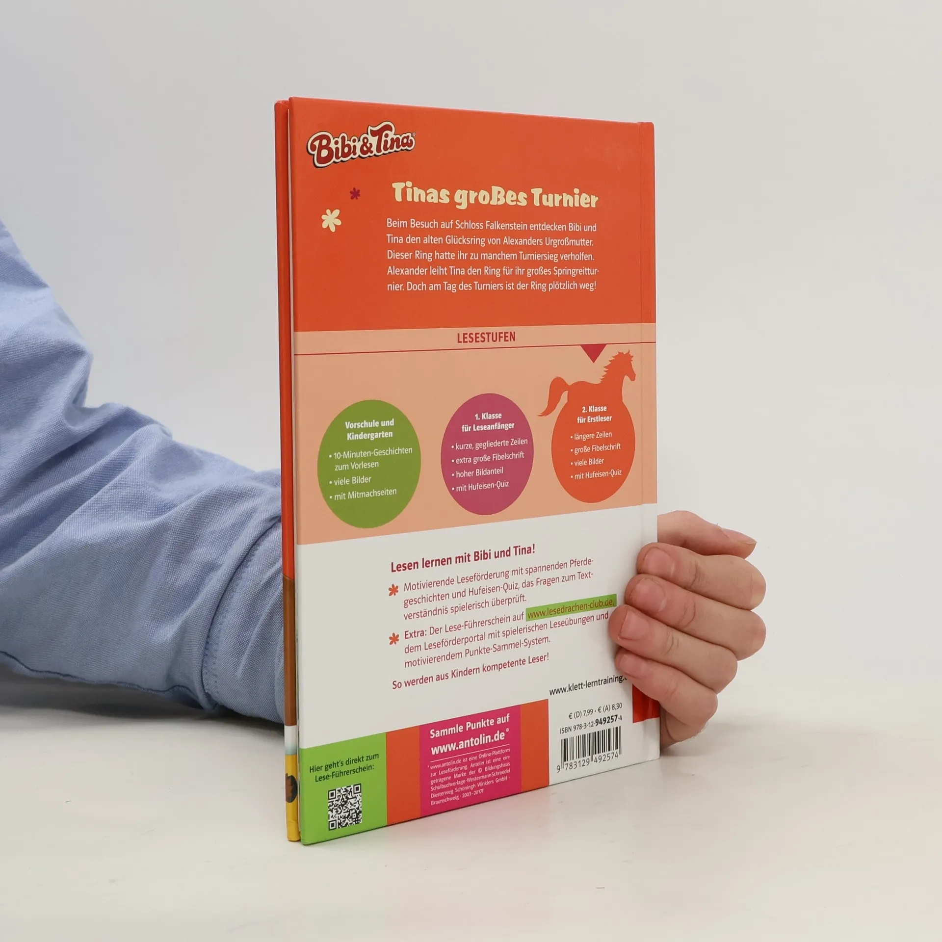 Diese spannende Geschichte für Erstleser begeistert Fans von Bibi und Tina in der zweiten Klasse: Beim Besuch auf Schloss Falkenstein entdecken Bibi und Tina den alten Glücksring von Alexanders Urgroßmutter. Dieser Ring hatte ihr zu manchem Turniersieg verholfen. Alexander leiht Tina den Ring für ihr großes Springreit-Turnier. Doch am Tag des Turniers ist der Ring plötzlich weg! Optimal abgestimmt auf das erste Lesevermögen durch ein ausgewogenes Verhältnis von Textmenge und Illustration, angepasster Schriftart, Schriftgröße und Zeilenlänge Mit Hufeisen-Quiz zur spielerischen Überprüfung des Textverständnisses Der Lese-Führerschein online bescheinigt die ersten Erfolgserlebnisse beim Lesenlernen Die perfekte Kombination aus kompetenter Lesevermittlung und spannender Geschichte rund um Pferde, Freundschaft und Abenteuer!