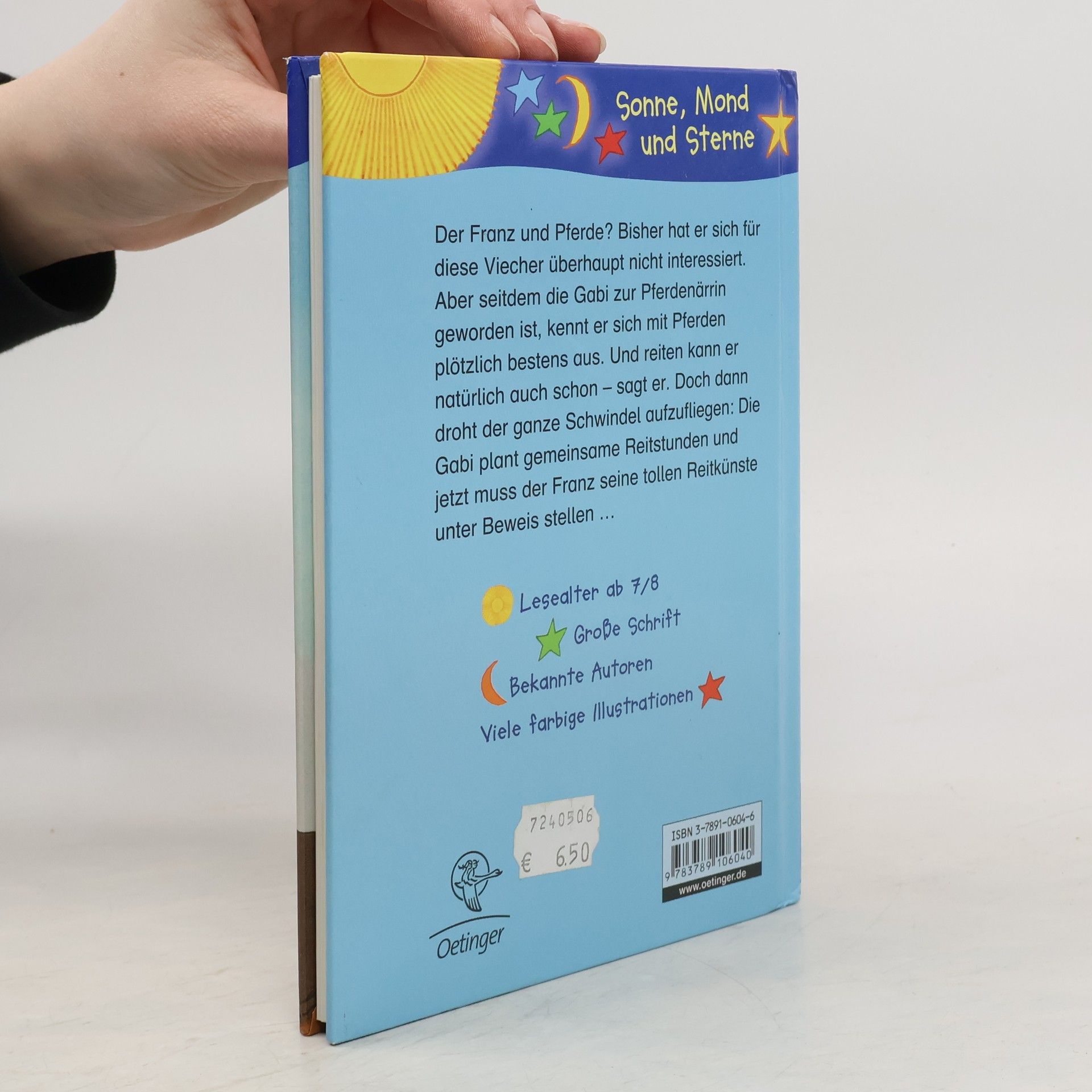 Aus Liebe zur Gabi wird der Franz zum Pferdenarr Der Franz hat mal wieder Probleme: Seit neuestem schwärmt die Gabi für Pferde, steckt nur noch mit ihrer Freundin Sandra zusammen und kümmert sich nicht mehr um ihn. Aus Eifersucht erzählt der Franz der Gabi, dass er reiten kann und trumpft mit Fachwissen aus einem alten Pferdebuch seiner Mutter auf. Doch dann droht der ganze Schwindel aufzufliegen: Ein Freund von Gabis Vater eröffnet in Kürze einen Reiterhof, auf dem die Kinder kostenlose Reitstunden nehmen können.