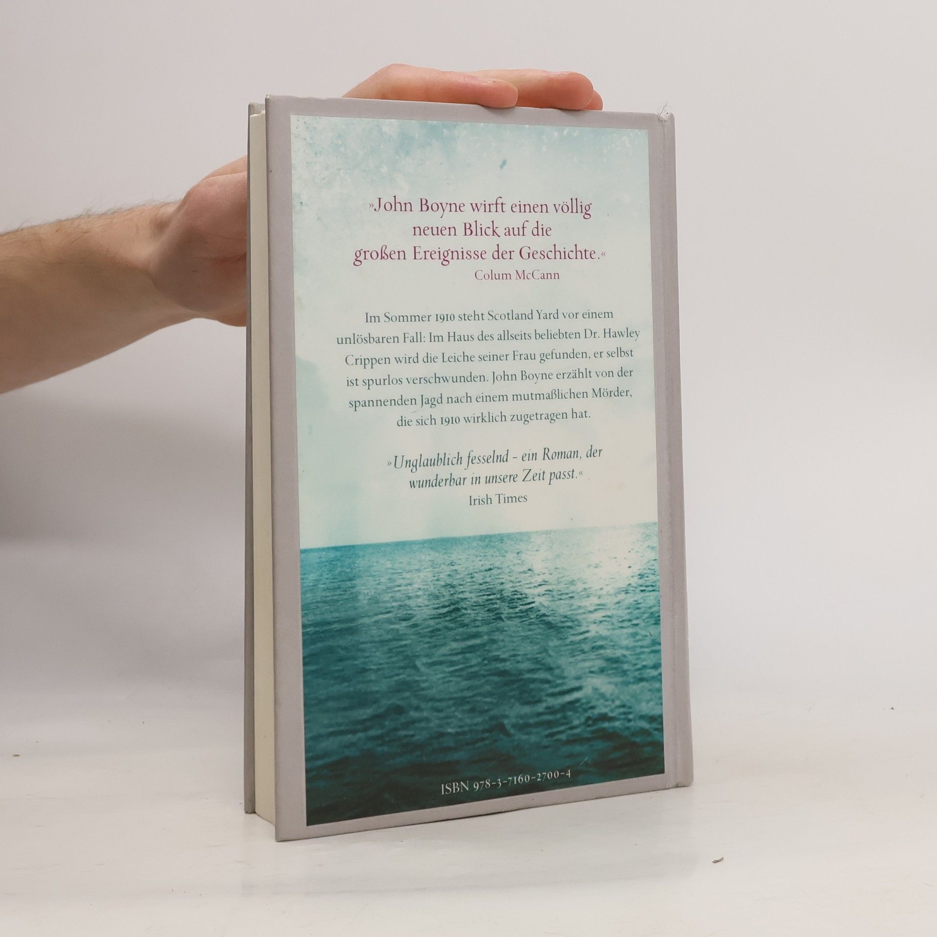 Am 20. Juli 1910 verlässt das Passagierschiff S.S. Montrose den Hafen von Antwerpen und steuert mit rund 1.400 Fahrgästen in Richtung Quebec. Unter ihnen aus London ein Vater mit seinem Sohn. Im März desselben Jahres meldet im Londoner Büro von Scotland Yard eine Frau ihre Freundin Cora Crippen als vermisst und äußert einen ungeheuerlichen Verdacht: Coras Ehemann, der Arzt Hawley Crippen, soll seine Frau ermordet haben. Inspektor Walter Drew schenkt diesem Hinweis jedoch keinerlei Glauben, denn Mr Crippen gilt als überaus freundlich, sympathisch und harmlos. Doch auch Mr Crippen scheint wie vom Erdboden verschluckt, und dann macht Scotland Yard eines Tages einen grausigen Fund. In Vor- und Rückblenden zwischen den Ereignissen in London und auf der S.S. Montrose erzählt John Boyne von der spannenden Jagd nach einem Mörder und seiner Komplizin, die sich im Jahr 1910 wirklich so zugetragen hat. Sie führt uns zurück in die große Zeit der Passierschifffahrt kurz vor dem Untergang der Titanic und der großen technischen Erfindungen: Zum ersten Mal in der Geschichte der Menschheit wurde ein Täter per Schiffsfunk überführt.