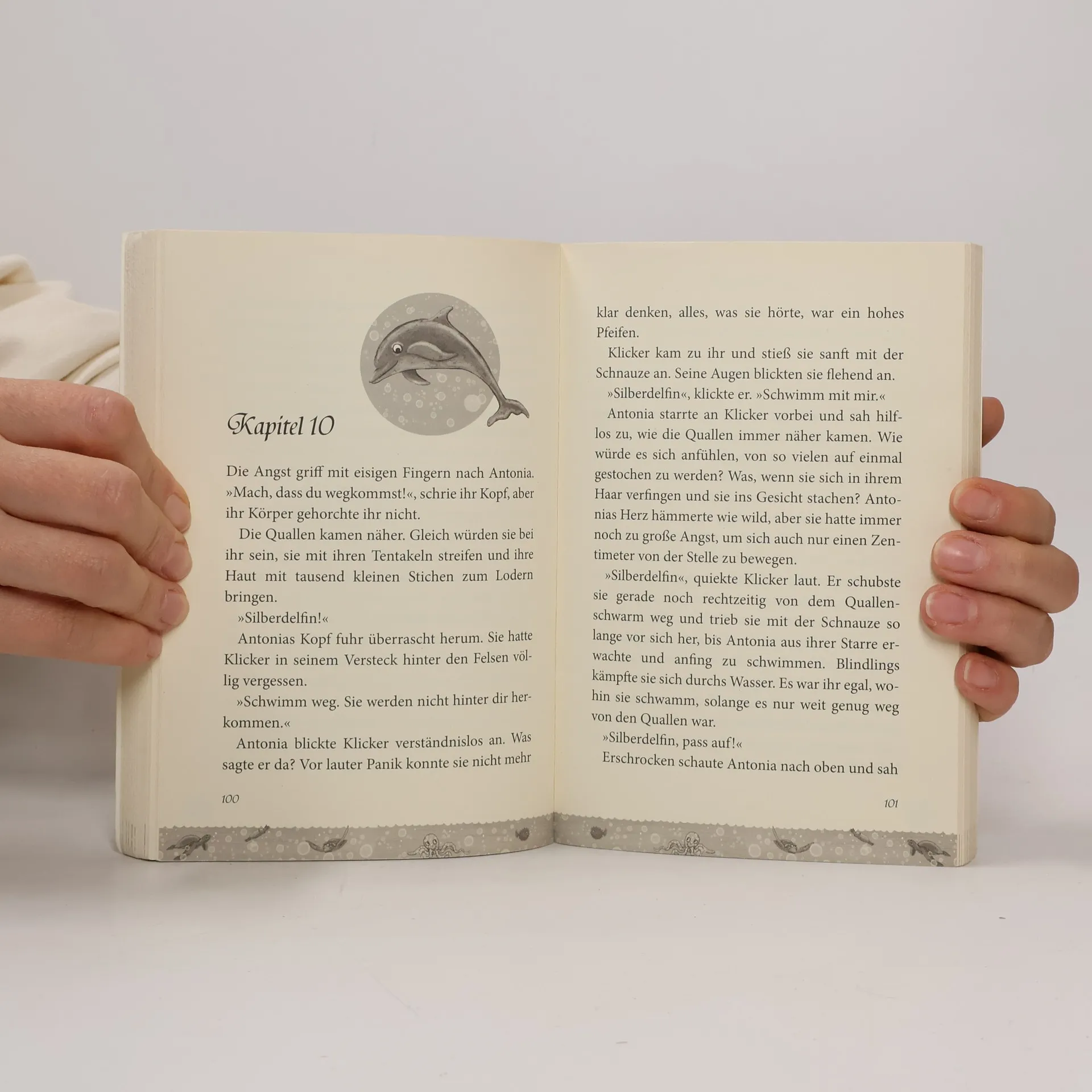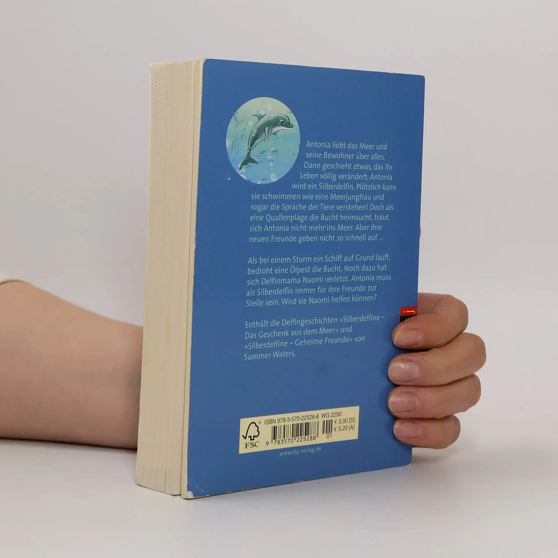Die Welttagseditionen bei cbjAntonia kann dank eines Delfinamuletts schwimmen und tauchen wie eine Meerjungfrau und die Sprache der Delfine verstehen! Sie ist für eine besondere Aufgabe auserwählt, denn Antonia ist ein Silberdelfin – eine Beschützerin der Delfine und aller anderen Meereslebewesen in ihrer Bucht. Wenn die Delfine in Gefahr geraten, muss Antonia zur Stelle sein und ihren Freunden helfen. Enthält die Delfingeschichten „Silberdelfine – Das Geschenk aus dem Meer“ und „Silberdelfine – Geheime Freunde“.