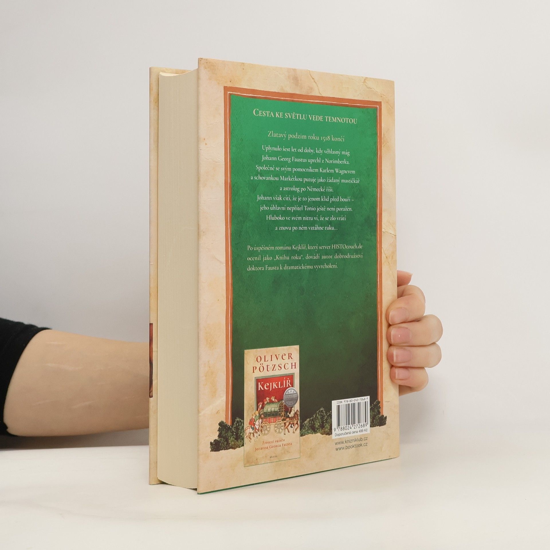 Zlatavý podzim roku 1518 končí. Uplynulo šest let od doby, kdy věhlasný mág Johann Georg Faustus uprchl z Norimberka. Společně se svým pomocníkem Karlem Wagnerem a schovankou Markétkou putuje jako žádaný mastičkář a astrolog po Německé říši. Johann však cítí, že je to jenom klid před bouří – jeho úhlavní nepřítel Tonio ještě není poražen. Hluboko ve svém nitru ví, že se zlo vrátí a znovu po něm vztáhne ruku... Po úspěšném románu Kejklíř, který server HISTOcouch.de ocenil jako „Knihu roku“, dovádí autor dobrodružství doktora Fausta k dramatickému vyvrcholení.