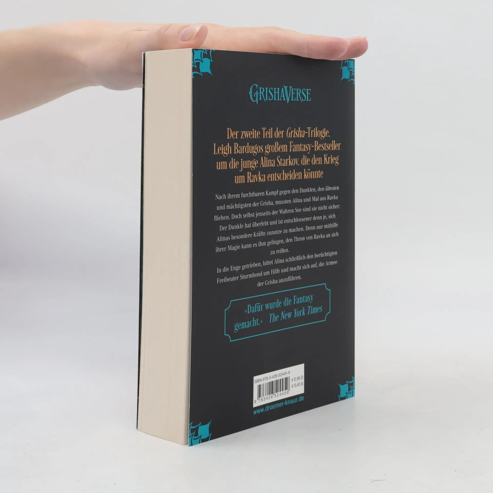 Nach ihrem furchtbaren kämpf gegen den Dunklen, den ältesten und mächtigsten der Grisha, mussten Alina und Mal aus Ravka fliehen. Doch selbst jenseits der Wahren See sind sie nicht sicher: Der Dunkle hat überlebt und ist entschlossener denn je, sich Alinas besondere Kräfte zunutze zu machen. Denn nur mithilfe ihrer Magie kann es ihm gelingen, den Thron von Ravka an sich zu reißen. In die Enge getrieben, bittet Alina schließlich den berüchtigten Freibeuter Sturmhond um Hilfe und macht sich auf, die Armee der Grisha anzuführen.