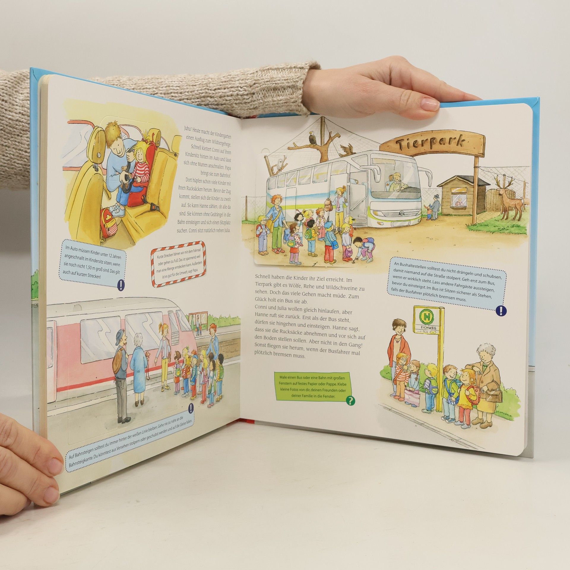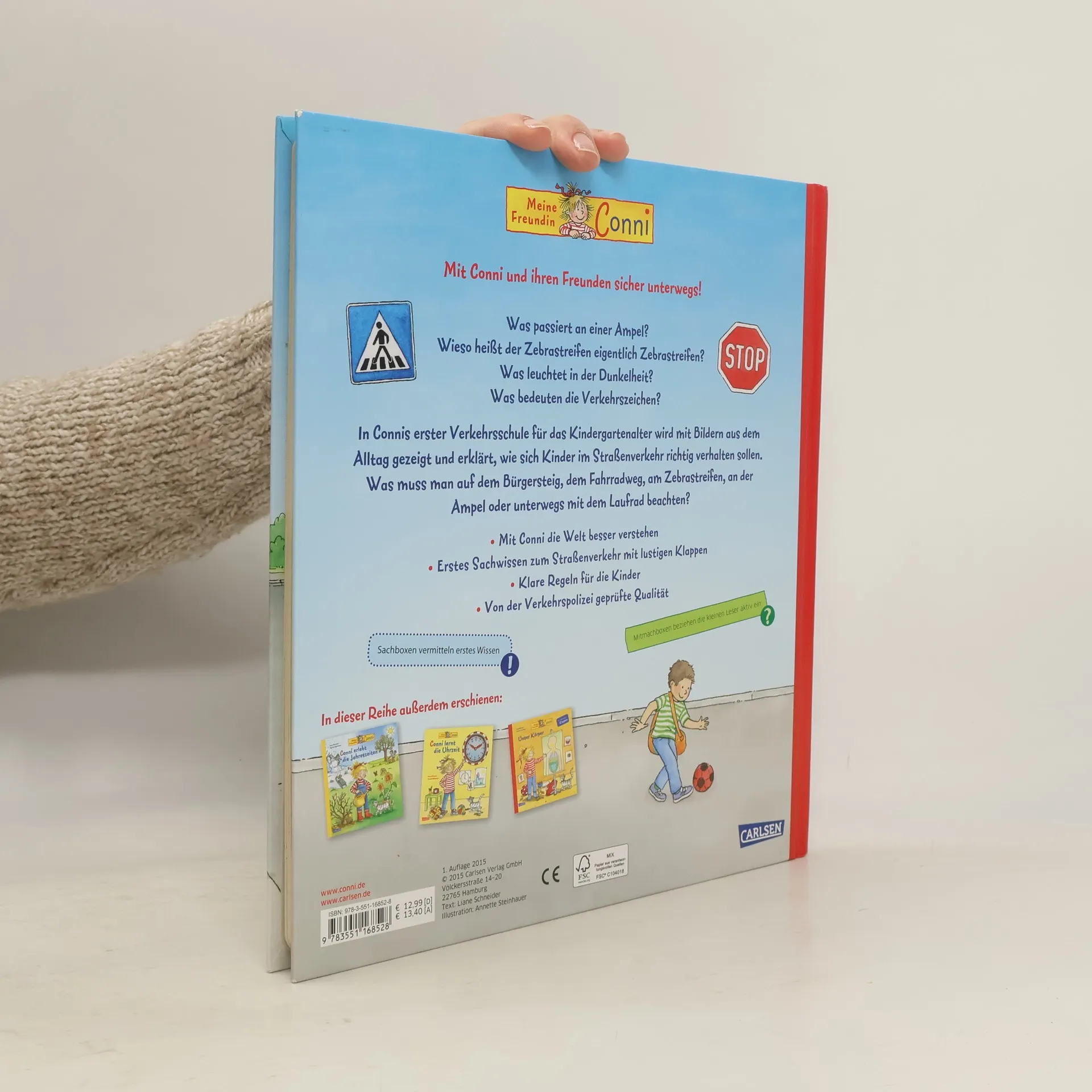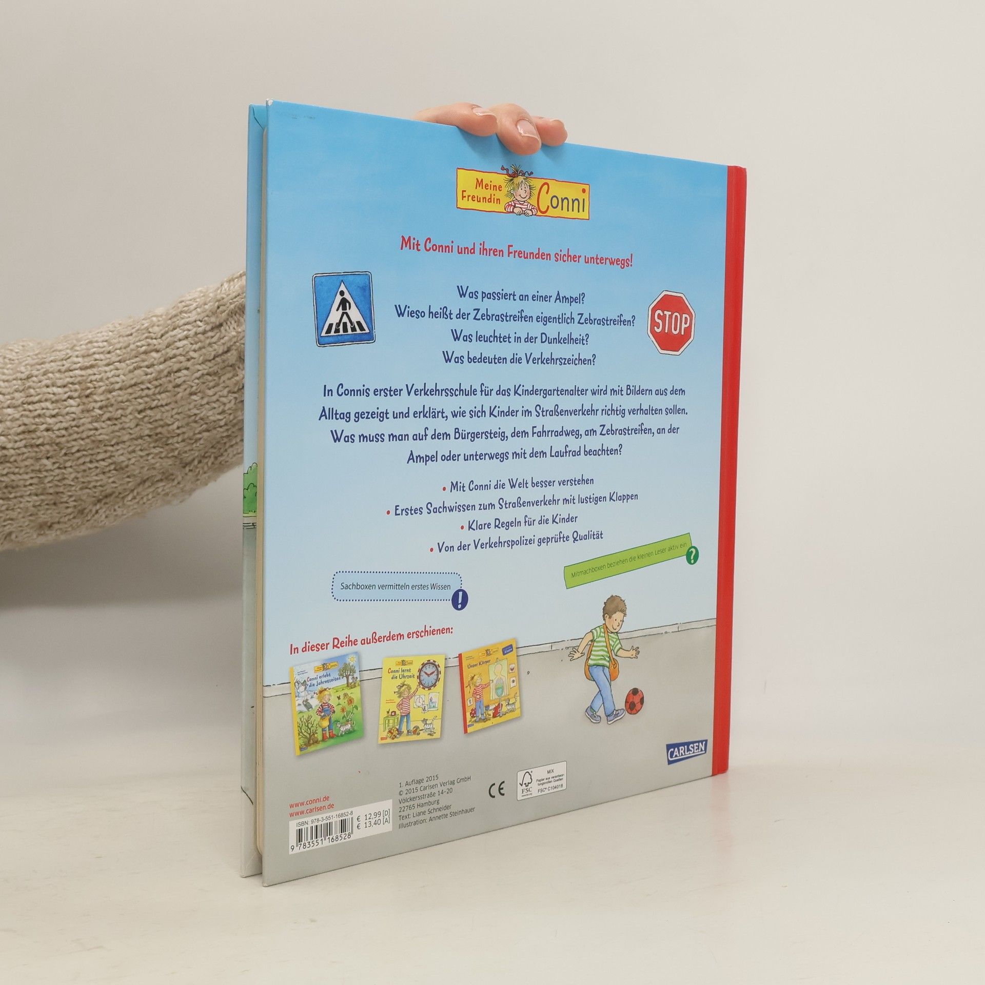 Mehr Sicherheit im Straßenverkehr für Kinder! In dieser Conni-Verkehrsschule für das Kindergartenalter werden Bilder aus dem Alltag gezeigt, anhand derer die Kinder lernen können, sich auf Strassen und Wegen richtig zu verhalten. Conni zeigt, wie man am Zebrastreifen, an der Ampel oder unterwegs mit dem Laufrad macht. Immer ist ein Erwachsener dabei, aber es wird geübt, auch alleine schon gut Bescheid zu wissen. Mit Conni lernen Kinder gern ! - großes Conni-Sachbuch mit vielen Klappen - erklärt den Kindergartenkindern klare Regeln - von der Verkehrspolizei geprüfte Qualität