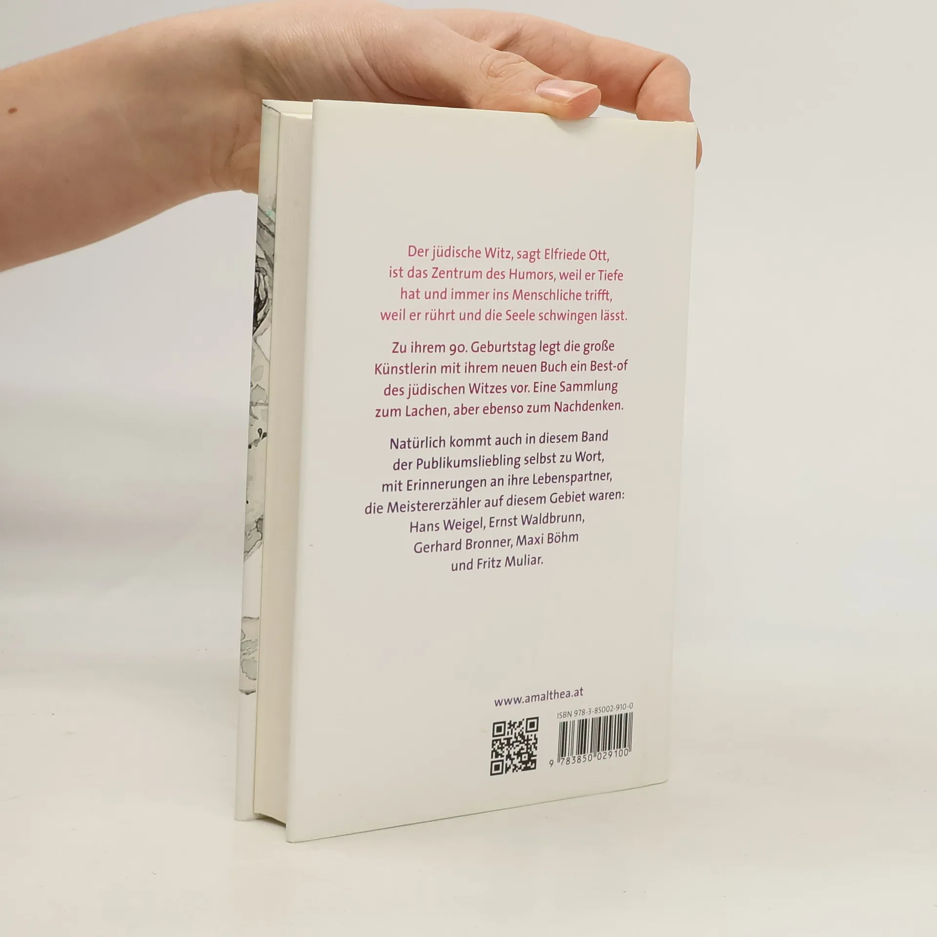 Das neue Buch zum 90. Geburtstag Da ihr vorletztes Buch, 'Worüber ich lache', mit Freude angenommen wurde, hat sich Elfriede Ott entschlossen, einen weiteren Band mit ihren Lieblingswitzen zu veröffentlichen, eine ganz persönliche Sammlung, in die sie eigene Erlebnisse und Begegnungen eingefügt hat. Der Schwerpunkt liegt auf dem jüdischen Witz, wobei im Grunde genommen zwei Fragen zu klären sind: Was ist ein Witz im Allgemeinen und was macht den jüdischen Witz im Besonderen aus? Reicht es gar schon, dass Herr Kohn und Herr Löwy in ein Gebäude gehen, damit ein jüdischer Witz herauskommt? Die Antwort, die Kammerschauspielerin Elfriede Ott auf diese Frage findet, wird die Leser verblüffen und amüsieren. Der jüdische Witz, sagt Elfriede Ott, ist das Zentrum des Humors, weil er Tiefe hat und immer ins Menschliche trifft, weil er rührt und die Seele schwingen lässt.