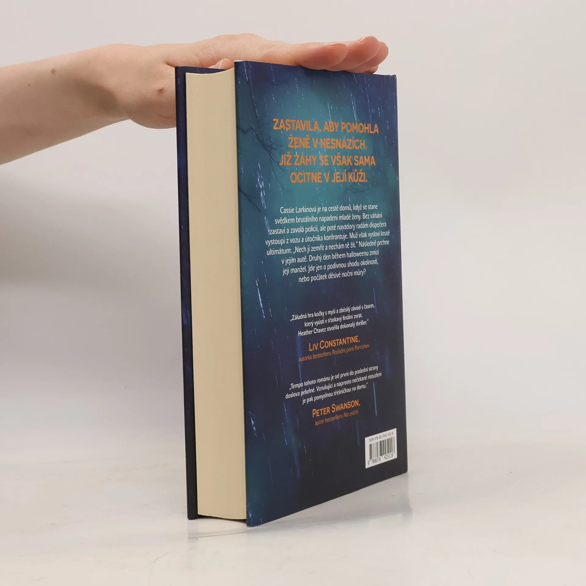 Jedné deštivé noci jede veterinářka Cassie Larkinová ve svém autě sama domů, když se stane svědkem brutálního napadení mladé ženy obrovským mužem. Bez váhání zastaví a zavolá policii, ale poté navzdory radám dispečera ze svého vozu vystoupí a útočníka konfrontuje. Muž však vysloví kruté ultimátum: „Když ji necháš zemřít, nechám tě naživu.“ Jakožto lékařka, třebaže veterinární, je však odhodlána ženě v bezvědomí pomoci, a zatímco ji prohlíží, útočník prchá v jejím autě. A co je horší, teď zná její jméno. Její adresu. A ví o jejích dětech. Policisté, kteří případ vyšetřují, se snaží Cassie ujistit, že se nemá čeho bát – pachatel už bude jistě kdesi daleko. Ale ona si tím není tak jistá… Příštího večera zmizí během halloweenského koledování s jejich šestiletou dcerou Cassiin manžel Sam. Jde jen o podivnou shodu okolností, nebo počátek děsivé noční můry? Ano, Sam byl v poslední době odtažitý – je možné, že si něco začal s jinou ženou? Nebo je manželovo zmizení nějak spojené s Cassiiným setkáním s neznámým útočníkem? Tyto a další otázky jí divoce víří hlavou a Cassie ví, že nemůže věřit nikomu, možná ani sobě. Zcela jistě však ví, že nemůže jen nečinně přihlížet, zatímco jsou její nejbližší vystaveni smrtelnému nebezpečí…