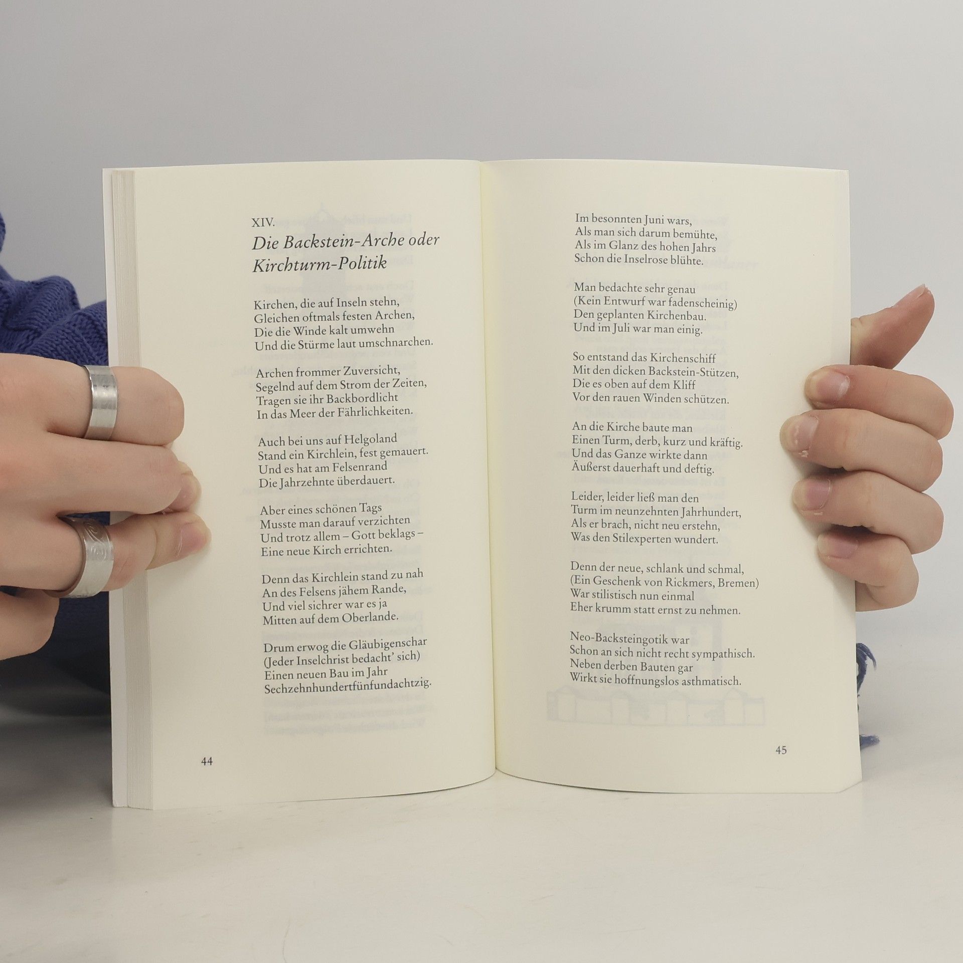 „Irgendwo ins grüne Meer hat ein Gott mit leichtem Pinsel, lächelnd, wie von ungefähr, einen Fleck getupft: Die Insel.“ So besingt James Krüss seine Heimat, die Insel Helgoland, der er zeitlebens verbunden blieb, obwohl er sie schon 1942 verlassen musste. 612 Verse schildern die Geschichte der Insel von der Steinzeit bis nach dem Zweiten Weltkrieg kurzweilig und mit viel Humor und ironischer Distanz und lassen dennoch immer die enge Beziehung des Chronisten zu „seiner“ Insel durchscheinen. Entstanden sind die Verse in den Jahren 1945–46, während Helgoland Bombenziel der Royal Air Force und daher unbewohnbar war, erstmals abgedruckt wurden sie in der von Krüss herausgegebenen Monats-Zeitschrift „Helgoland“, später auch in Buchform. Das lange vergriffene Werk wird nun im Husum Verlag neu aufgelegt. Ein Anhang enthält u. a. Erläuterungen des Autors zur Entstehung der „Historie“.