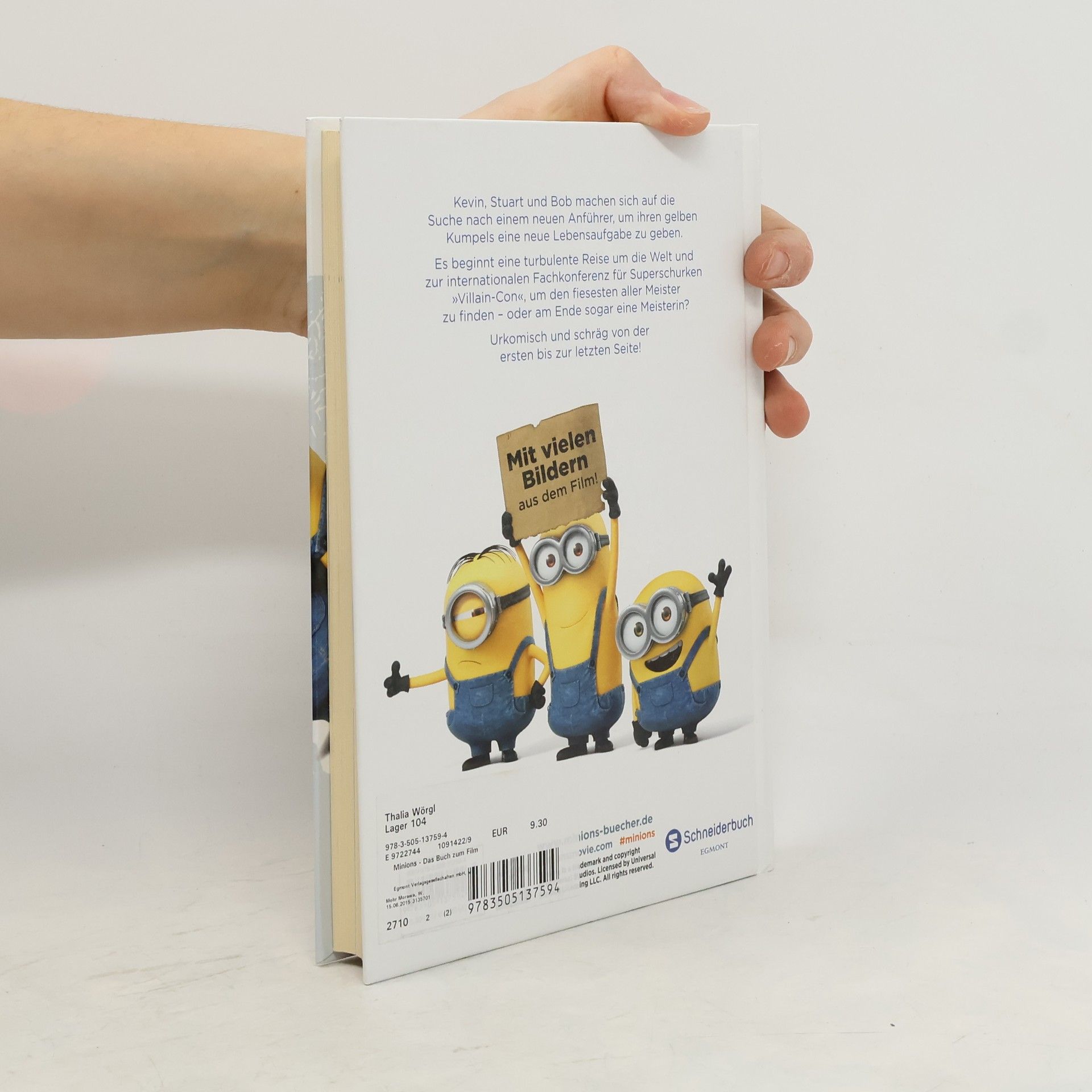 Großer Auftritt für die kleinen, gelben Helferlein aus den Kinoerfolgen „Ich – einfach unverbesserlich“ 1 + 2. Kevin, Stuart und Bob machen sich auf die Suche nach einem neuen Anführer, um ihren gelben Kumpels eine neue Lebensaufgabe zu geben. Es beginnt eine turbulente Reise um die Welt und zur internationalen Konferenz der Schurken und Bösewichte »Villain-Con«, um den fiesesten aller Meister zu finden – oder am Ende sogar eine Meisterin? Urkomisch und schräg von der ersten bis zur letzten Seite!