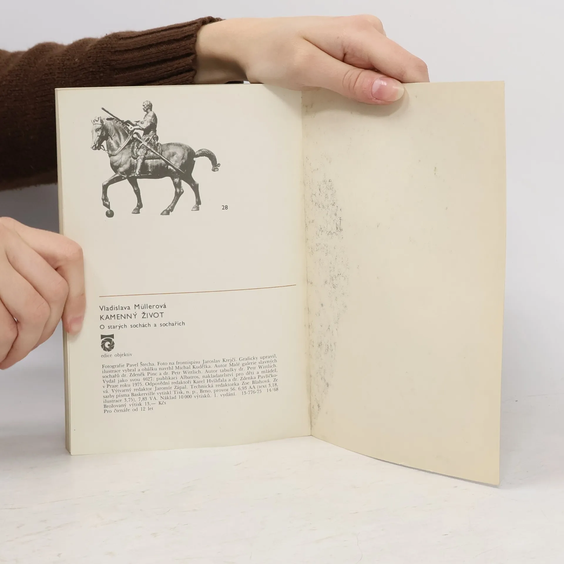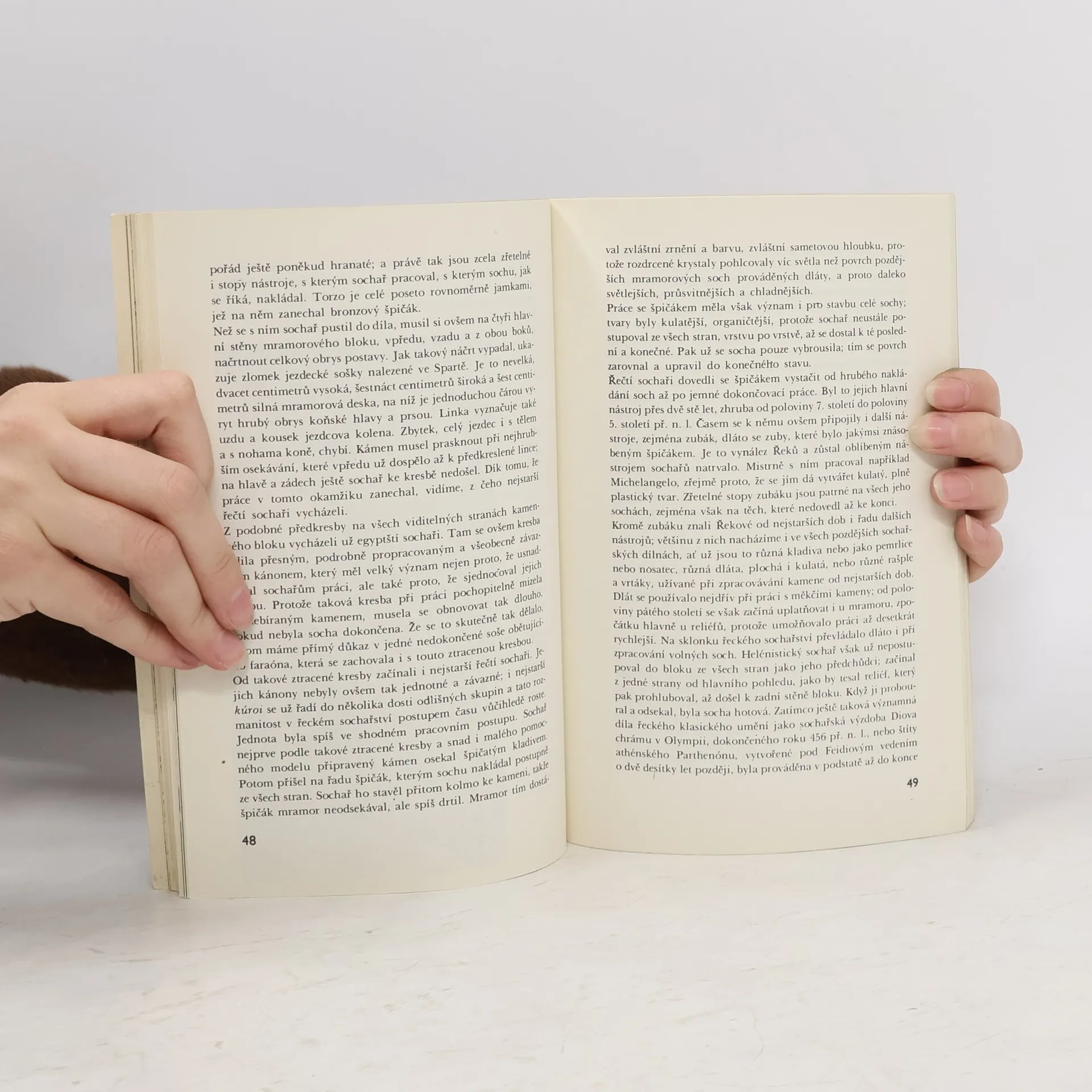 Kniha pojednává a podává přehled o starých sochách a sochařích. Vznik sochařství, staré báje, Řecko, Řím, staré říše a další.V textu ilustrace, reprodukce, foto, 28 příloh - křída s fotografiemi starých dochovalých soch a jejich tvůrců, přehledná tabulka dějin od 40 tisíc let před n.l. až do roku 1960. Galerie slavných sochařů s životopisy a portréty, slovníček výrazů, Perfektní stav