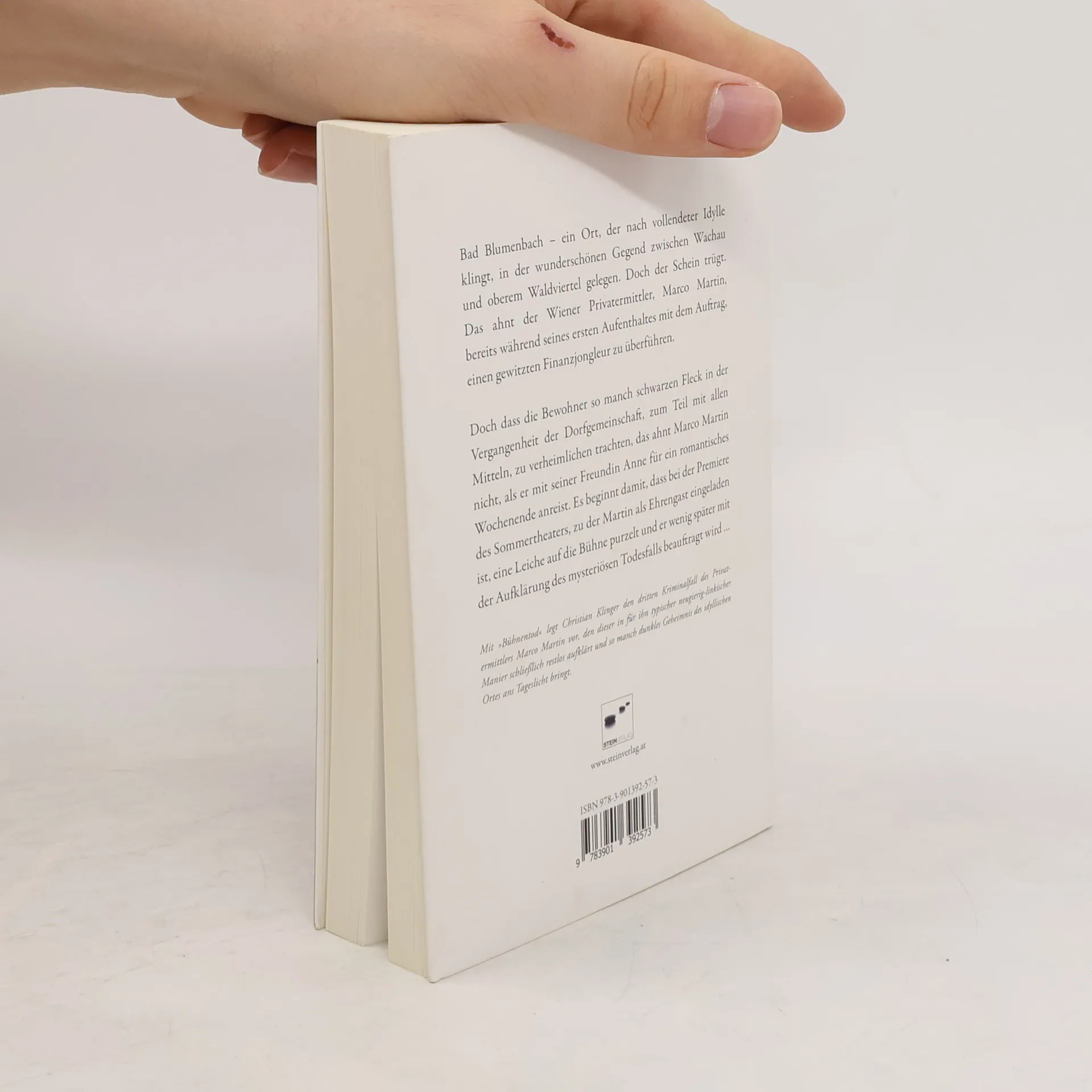 Bad Blumenbach – ein Ort, der nach vollendeter Idylle klingt, versucht sich auch so zu geben: beschaulich und friedlich. Das Sommertheater soll zusätzliche Gäste in das Dorf an der Grenze zwischen Waldviertel und Wachau bringen. Doch die Freikarten, die der Wiener Privatermittler, Marco Martin, vom Bürgermeister für seine Mithilfe bei der Überführung eines Finanzjongleurs erhält, entpuppen sich schnell als Danaergeschenk. Der laue Abend, den Martin dazu nutzen wollte, seiner Beziehung mit Anne neuen Aufwind zu bescheren, verkehrt sich schnell ins Gegenteil, als bei der Premiere eine Leiche auf die Bühne purzelt. Angestachelt von Neugier beginnt Marco hinter die Kulissen zu blicken, was beim Bürgermeister auf wenig Gegenliebe stößt. Ist doch das Dorf wegen der wenige Tage zuvor gefundenen Moorleiche ohnedies zu sehr in negativen Focus geraten. Die plötzlich auftauchenden Irrlichter sind nicht die einzigen Hindernisse, die sich Martin in den Weg stellen. Der Detektiv muss bald feststellen, dass auch Ermittler nicht unverletzlich sind und dass das Dorf wohl einige dunkle Flecken in seiner Geschichte hat. Bald erkennt Marco Martin, dass bis auf den Toten auf der Bühne nahezu alle Dorfbewohner Dreck am Stecken haben. Zugleich überstürzen sich auch die privaten Probleme Martins, der eines merkt: Zeit ist flüchtig.