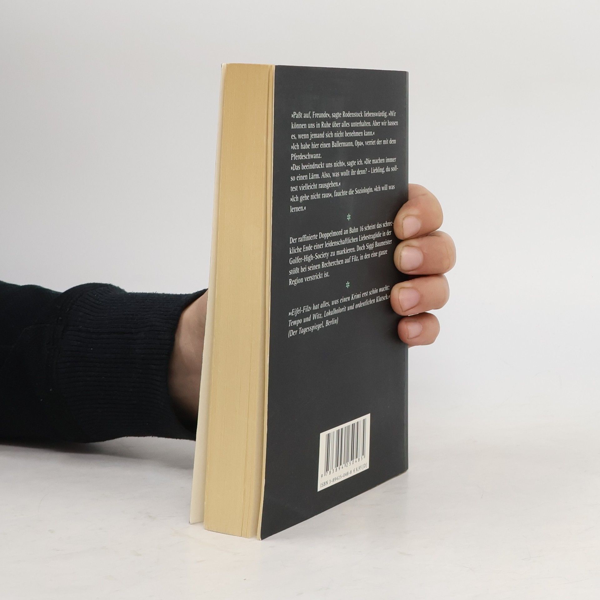 Der dritte Band der Eifel-Serie. Ein junges Pärchen wird auf Bahn sechzehn eines Golfplatzes tot aufgefunden. Waren sie Opfer eines Eifersuchtsdramas, wie die Mordkommission vermutet? - Siggi Baumeister stößt bei seinen Recherchen in der Eifler High Society auf einen Filz ungeheuren Ausmaßes. Nominiert für den ›Friedrich-Glauser-Preis‹. 'Am Anfang steht genregemäß ein Mord; ein doppelter gar, mit viel krimineller Energie auf dem Golfplatz ausgeführt. Dann hetzt der Autor sein private eye, den schnoddrigen Journalisten Siggi Baumeister, auf Tätersuche durch Städte und Dörfer der Eifel. Der Provinz- Reporter steht einem Philip Marlowe in nichts nach – wie dieser kommt Baumeister weder heldenhaft noch unversehrt aus der Geschichte heraus. Mit milder Ironie macht er sich über das Privateste der einfachen und komplizierteren Eingeborenen her, über ihr Liebes- und Geldleben.' (DIE WOCHE)